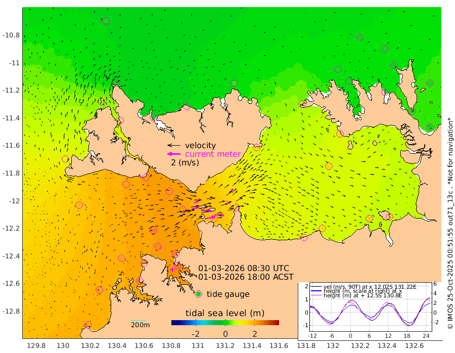 162cm/s 78T +4cm/s rms + 6cm/s 51T. Darwin_C1 52m 144cm/s 92T +4cm/s rms + 7cm/s -161T. Darwin_CW1 22m 100cm/s 72T +4cm/s rms + 8cm/s 61T. Darwin_CW2 34m 93cm/s 46T +3cm/s rms + 9cm/s 98T. Darwin_CW3 22m 151cm/s 89T +5cm/s rms + 7cm/s 88T. Darwin_C3 56m 85cm/s 66T +2cm/s rms + 9cm/s -126T. Darwin_CTbW 22m 25cm/s 73T +1cm/s rms + 1cm/s -47T. DARBGF 30m 15cm/s 99T +4cm/s rms + 3cm/s 80T. NRSDAR 19m 2cm Goodrich Bank 193cm Point Jenny 192cm Native Point 202cm Fish Reef 214cm Tapa Bay 98cm Point Fawcett (Offshore) 237cm Burge Point 202cm Munkunuwa 171cm Beagle A 213cm Parsons Bank 226cm Fenton Patches 211cm Hancox Shoal Area 231cm Nightcliff 239cm Darwin 217cm Charles Point Patches 178cm Glyde Point 145cm Chambers Bay 137cm Point Stuart 149cm Cape Hotham 136cm Christine Reef 148cm West Alligator Head 139cm East Field Island 118cm Two Hills Bay 127cm Camp Point 207cm Medina Inlet South 74cm South Barlow Point 51cm St. Asaph Bay 5cm Cape Van Dieman 6cm Snake Bay 9cm Cache Point 23cm Point Jahleel (Off) 63cm Cape Don 17cm Port Essington 16cm Smith Point - West 8cm NW Peacock Island -1cm North Of Jones Shoal 0cm Peacock Island 14cm Point David 11cm D'urville Point 14cm Copeland Island 14cm One Tree Point