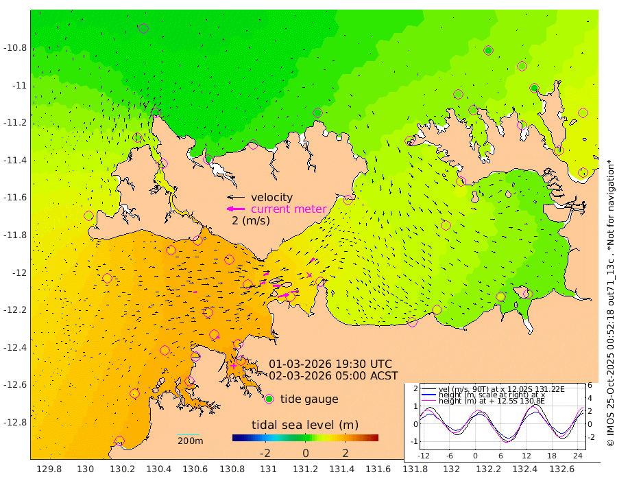 126cm/s 78T +4cm/s rms + 6cm/s 51T. Darwin_C1 52m 88cm/s 90T +4cm/s rms + 7cm/s -161T. Darwin_CW1 22m 63cm/s 73T +4cm/s rms + 8cm/s 61T. Darwin_CW2 34m 69cm/s 42T +3cm/s rms + 9cm/s 98T. Darwin_CW3 22m 84cm/s 89T +5cm/s rms + 7cm/s 88T. Darwin_C3 56m 65cm/s 65T +2cm/s rms + 9cm/s -126T. Darwin_CTbW 22m 35cm/s 87T +1cm/s rms + 1cm/s -47T. DARBGF 30m 34cm/s 116T +4cm/s rms + 3cm/s 80T. NRSDAR 19m -2cm Goodrich Bank 147cm Point Jenny 144cm Native Point 160cm Fish Reef 163cm Tapa Bay 78cm Point Fawcett (Offshore) 176cm Burge Point 150cm Munkunuwa 128cm Beagle A 174cm Parsons Bank 169cm Fenton Patches 167cm Hancox Shoal Area 172cm Nightcliff 184cm Darwin 170cm Charles Point Patches 129cm Glyde Point 88cm Chambers Bay 85cm Point Stuart 111cm Cape Hotham 76cm Christine Reef 84cm West Alligator Head 65cm East Field Island 83cm Two Hills Bay 81cm Camp Point 156cm Medina Inlet South 61cm South Barlow Point 35cm St. Asaph Bay 6cm Cape Van Dieman 9cm Snake Bay 10cm Cache Point 22cm Point Jahleel (Off) 63cm Cape Don 41cm Port Essington 40cm Smith Point - West 39cm NW Peacock Island 19cm North Of Jones Shoal 10cm Peacock Island 67cm Point David 48cm D'urville Point 71cm Copeland Island 61cm One Tree Point