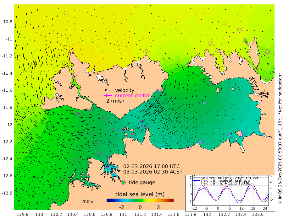 25cm/s -103T +4cm/s rms + 6cm/s 51T. Darwin_C1 52m 42cm/s -88T +4cm/s rms + 7cm/s -161T. Darwin_CW1 22m 27cm/s -109T +4cm/s rms + 8cm/s 61T. Darwin_CW2 34m 51cm/s -142T +3cm/s rms + 9cm/s 98T. Darwin_CW3 22m 62cm/s -91T +5cm/s rms + 7cm/s 88T. Darwin_C3 56m 5cm/s 46T +2cm/s rms + 9cm/s -126T. Darwin_CTbW 22m 44cm/s 99T +1cm/s rms + 1cm/s -47T. DARBGF 30m 48cm/s 131T +4cm/s rms + 3cm/s 80T. NRSDAR 19m 83cm Goodrich Bank -9cm Point Jenny -8cm Native Point -20cm Fish Reef -28cm Tapa Bay 63cm Point Fawcett (Offshore) -54cm Burge Point -24cm Munkunuwa 3cm Beagle A -51cm Parsons Bank -52cm Fenton Patches -61cm Hancox Shoal Area -57cm Nightcliff -70cm Darwin -37cm Charles Point Patches -82cm Glyde Point -119cm Chambers Bay -131cm Point Stuart -85cm Cape Hotham -110cm Christine Reef -153cm West Alligator Head -177cm East Field Island -81cm Two Hills Bay -84cm Camp Point -26cm Medina Inlet South 63cm South Barlow Point 76cm St. Asaph Bay 88cm Cape Van Dieman 87cm Snake Bay 82cm Cache Point 59cm Point Jahleel (Off) 18cm Cape Don 61cm Port Essington 62cm Smith Point - West 61cm NW Peacock Island 77cm North Of Jones Shoal 26cm Peacock Island 44cm Point David 62cm D'urville Point 39cm Copeland Island 48cm One Tree Point