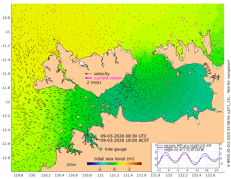 9cm/s -97T +4cm/s rms + 6cm/s 51T. Darwin_C1 52m 8cm/s -91T +4cm/s rms + 7cm/s -161T. Darwin_CW1 22m 7cm/s 73T +4cm/s rms + 8cm/s 61T. Darwin_CW2 34m 27cm/s -137T +3cm/s rms + 9cm/s 98T. Darwin_CW3 22m 19cm/s -88T +5cm/s rms + 7cm/s 88T. Darwin_C3 56m 6cm/s 64T +2cm/s rms + 9cm/s -126T. Darwin_CTbW 22m 48cm/s 95T +1cm/s rms + 1cm/s -47T. DARBGF 30m 52cm/s 128T +4cm/s rms + 3cm/s 80T. NRSDAR 19m 94cm Goodrich Bank 68cm Point Jenny 72cm Native Point 59cm Fish Reef 59cm Tapa Bay 94cm Point Fawcett (Offshore) 59cm Burge Point 64cm Munkunuwa 88cm Beagle A 39cm Parsons Bank 60cm Fenton Patches 27cm Hancox Shoal Area 44cm Nightcliff 33cm Darwin 55cm Charles Point Patches -15cm Glyde Point -82cm Chambers Bay -104cm Point Stuart -36cm Cape Hotham -66cm Christine Reef -125cm West Alligator Head -148cm East Field Island -58cm Two Hills Bay -38cm Camp Point 59cm Medina Inlet South 102cm South Barlow Point 103cm St. Asaph Bay 98cm Cape Van Dieman 98cm Snake Bay 89cm Cache Point 70cm Point Jahleel (Off) 30cm Cape Don 61cm Port Essington 62cm Smith Point - West 59cm NW Peacock Island 70cm North Of Jones Shoal 23cm Peacock Island 35cm Point David 58cm D'urville Point 28cm Copeland Island 37cm One Tree Point