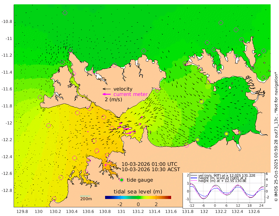 146cm/s 78T +4cm/s rms + 6cm/s 51T. Darwin_C1 52m 103cm/s 93T +4cm/s rms + 7cm/s -161T. Darwin_CW1 22m 87cm/s 72T +4cm/s rms + 8cm/s 61T. Darwin_CW2 34m 74cm/s 47T +3cm/s rms + 9cm/s 98T. Darwin_CW3 22m 139cm/s 89T +5cm/s rms + 7cm/s 88T. Darwin_C3 56m 76cm/s 66T +2cm/s rms + 9cm/s -126T. Darwin_CTbW 22m 19cm/s 75T +1cm/s rms + 1cm/s -47T. DARBGF 30m 13cm/s 84T +4cm/s rms + 3cm/s 80T. NRSDAR 19m -11cm Goodrich Bank 104cm Point Jenny 103cm Native Point 110cm Fish Reef 126cm Tapa Bay 49cm Point Fawcett (Offshore) 119cm Burge Point 120cm Munkunuwa 76cm Beagle A 134cm Parsons Bank 114cm Fenton Patches 138cm Hancox Shoal Area 142cm Nightcliff 148cm Darwin 131cm Charles Point Patches 103cm Glyde Point 86cm Chambers Bay 79cm Point Stuart 88cm Cape Hotham 77cm Christine Reef 87cm West Alligator Head 72cm East Field Island 74cm Two Hills Bay 64cm Camp Point 123cm Medina Inlet South 38cm South Barlow Point 20cm St. Asaph Bay -10cm Cape Van Dieman -4cm Snake Bay -7cm Cache Point 8cm Point Jahleel (Off) 38cm Cape Don 12cm Port Essington 16cm Smith Point - West 11cm NW Peacock Island 3cm North Of Jones Shoal 2cm Peacock Island 22cm Point David 16cm D'urville Point 24cm Copeland Island 21cm One Tree Point