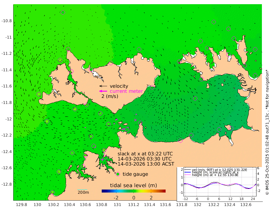 85cm/s 77T +4cm/s rms + 6cm/s 51T. Darwin_C1 52m 30cm/s 93T +4cm/s rms + 7cm/s -161T. Darwin_CW1 22m 24cm/s 72T +4cm/s rms + 8cm/s 61T. Darwin_CW2 34m 23cm/s 63T +3cm/s rms + 9cm/s 98T. Darwin_CW3 22m 13cm/s 87T +5cm/s rms + 7cm/s 88T. Darwin_C3 56m 62cm/s 65T +2cm/s rms + 9cm/s -126T. Darwin_CTbW 22m 27cm/s 93T +1cm/s rms + 1cm/s -47T. DARBGF 30m 27cm/s 119T +4cm/s rms + 3cm/s 80T. NRSDAR 19m 22cm Goodrich Bank 43cm Point Jenny 43cm Native Point 30cm Fish Reef 34cm Tapa Bay 36cm Point Fawcett (Offshore) 26cm Burge Point 34cm Munkunuwa 42cm Beagle A 24cm Parsons Bank 33cm Fenton Patches 23cm Hancox Shoal Area 37cm Nightcliff 14cm Darwin 18cm Charles Point Patches -1cm Glyde Point -18cm Chambers Bay -31cm Point Stuart -12cm Cape Hotham -1cm Christine Reef -33cm West Alligator Head -46cm East Field Island -13cm Two Hills Bay -18cm Camp Point 29cm Medina Inlet South 35cm South Barlow Point 34cm St. Asaph Bay 24cm Cape Van Dieman 20cm Snake Bay 23cm Cache Point 19cm Point Jahleel (Off) 11cm Cape Don 11cm Port Essington 21cm Smith Point - West 15cm NW Peacock Island 16cm North Of Jones Shoal 5cm Peacock Island -5cm Point David 16cm D'urville Point -6cm Copeland Island -2cm One Tree Point