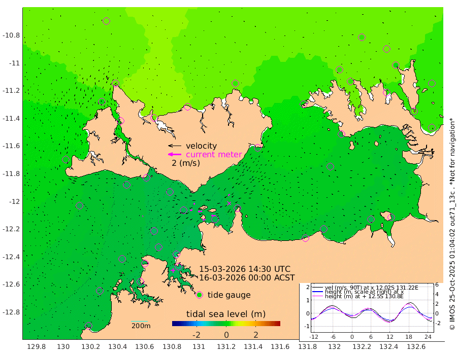 45cm/s -100T +4cm/s rms + 6cm/s 51T. Darwin_C1 52m 63cm/s -91T +4cm/s rms + 7cm/s -161T. Darwin_CW1 22m 37cm/s -108T +4cm/s rms + 8cm/s 61T. Darwin_CW2 34m 31cm/s -138T +3cm/s rms + 9cm/s 98T. Darwin_CW3 22m 58cm/s -92T +5cm/s rms + 7cm/s 88T. Darwin_C3 56m 20cm/s -113T +2cm/s rms + 9cm/s -126T. Darwin_CTbW 22m 7cm/s -117T +1cm/s rms + 1cm/s -47T. DARBGF 30m 6cm/s -93T +4cm/s rms + 3cm/s 80T. NRSDAR 19m 37cm Goodrich Bank -50cm Point Jenny -48cm Native Point -65cm Fish Reef -60cm Tapa Bay -9cm Point Fawcett (Offshore) -75cm Burge Point -63cm Munkunuwa -46cm Beagle A -64cm Parsons Bank -74cm Fenton Patches -65cm Hancox Shoal Area -81cm Nightcliff -80cm Darwin -66cm Charles Point Patches -57cm Glyde Point -52cm Chambers Bay -49cm Point Stuart -48cm Cape Hotham -42cm Christine Reef -56cm West Alligator Head -58cm East Field Island -34cm Two Hills Bay -37cm Camp Point -65cm Medina Inlet South 1cm South Barlow Point 11cm St. Asaph Bay 37cm Cape Van Dieman 36cm Snake Bay 35cm Cache Point 24cm Point Jahleel (Off) 3cm Cape Don 28cm Port Essington 28cm Smith Point - West 34cm NW Peacock Island 30cm North Of Jones Shoal 11cm Peacock Island 35cm Point David 32cm D'urville Point 32cm Copeland Island 29cm One Tree Point