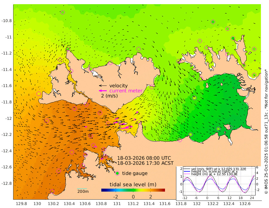 197cm/s 77T +4cm/s rms + 6cm/s 51T. Darwin_C1 52m 142cm/s 90T +4cm/s rms + 7cm/s -161T. Darwin_CW1 22m 111cm/s 74T +4cm/s rms + 8cm/s 61T. Darwin_CW2 34m 97cm/s 47T +3cm/s rms + 9cm/s 98T. Darwin_CW3 22m 151cm/s 89T +5cm/s rms + 7cm/s 88T. Darwin_C3 56m 106cm/s 65T +2cm/s rms + 9cm/s -126T. Darwin_CTbW 22m 66cm/s 87T +1cm/s rms + 1cm/s -47T. DARBGF 30m 66cm/s 115T +4cm/s rms + 3cm/s 80T. NRSDAR 19m 35cm Goodrich Bank 230cm Point Jenny 231cm Native Point 235cm Fish Reef 248cm Tapa Bay 140cm Point Fawcett (Offshore) 266cm Burge Point 246cm Munkunuwa 214cm Beagle A 247cm Parsons Bank 259cm Fenton Patches 232cm Hancox Shoal Area 265cm Nightcliff 262cm Darwin 246cm Charles Point Patches 158cm Glyde Point 73cm Chambers Bay 47cm Point Stuart 112cm Cape Hotham 73cm Christine Reef 43cm West Alligator Head 8cm East Field Island 67cm Two Hills Bay 78cm Camp Point 244cm Medina Inlet South 129cm South Barlow Point 96cm St. Asaph Bay 43cm Cape Van Dieman 49cm Snake Bay 39cm Cache Point 48cm Point Jahleel (Off) 74cm Cape Don 46cm Port Essington 50cm Smith Point - West 40cm NW Peacock Island 31cm North Of Jones Shoal 12cm Peacock Island 39cm Point David 48cm D'urville Point 38cm Copeland Island 40cm One Tree Point