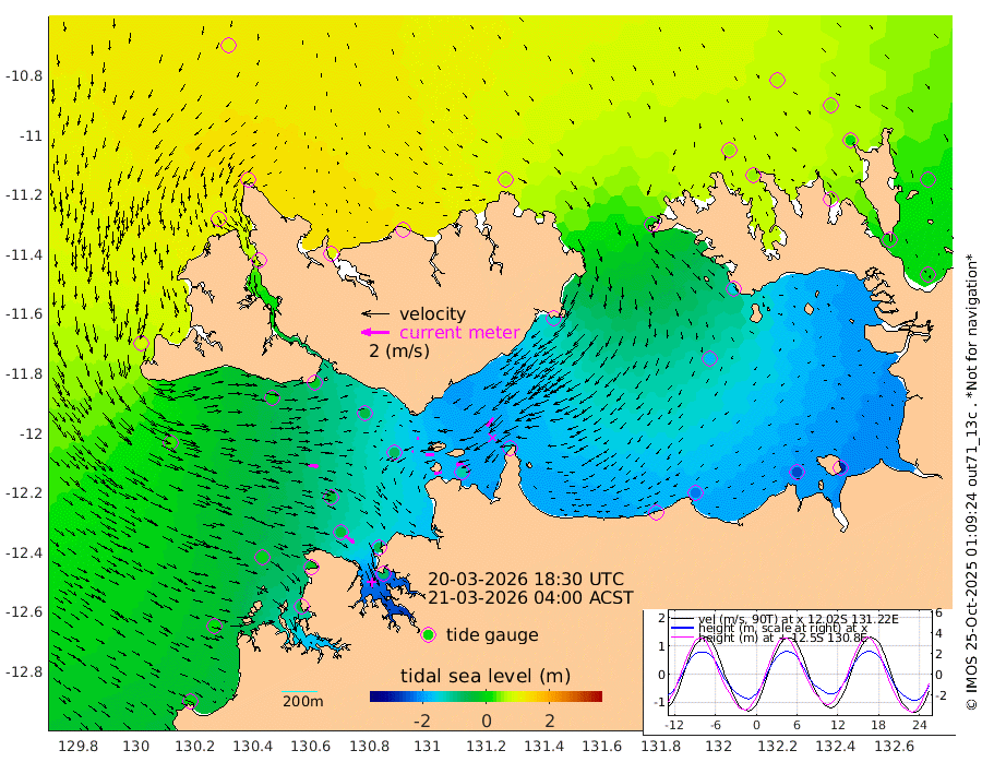 57cm/s -101T +4cm/s rms + 6cm/s 51T. Darwin_C1 52m 51cm/s -93T +4cm/s rms + 7cm/s -161T. Darwin_CW1 22m 10cm/s -102T +4cm/s rms + 8cm/s 61T. Darwin_CW2 34m 75cm/s -141T +3cm/s rms + 9cm/s 98T. Darwin_CW3 22m 59cm/s -89T +5cm/s rms + 7cm/s 88T. Darwin_C3 56m 15cm/s -114T +2cm/s rms + 9cm/s -126T. Darwin_CTbW 22m 74cm/s 97T +1cm/s rms + 1cm/s -47T. DARBGF 30m 83cm/s 128T +4cm/s rms + 3cm/s 80T. NRSDAR 19m 95cm Goodrich Bank 11cm Point Jenny 13cm Native Point -3cm Fish Reef -16cm Tapa Bay 83cm Point Fawcett (Offshore) -37cm Burge Point 8cm Munkunuwa 30cm Beagle A -46cm Parsons Bank -35cm Fenton Patches -70cm Hancox Shoal Area -63cm Nightcliff -78cm Darwin -36cm Charles Point Patches -120cm Glyde Point -195cm Chambers Bay -219cm Point Stuart -137cm Cape Hotham -175cm Christine Reef -250cm West Alligator Head -291cm East Field Island -149cm Two Hills Bay -143cm Camp Point -14cm Medina Inlet South 87cm South Barlow Point 100cm St. Asaph Bay 103cm Cape Van Dieman 93cm Snake Bay 90cm Cache Point 57cm Point Jahleel (Off) -5cm Cape Don 52cm Port Essington 55cm Smith Point - West 48cm NW Peacock Island 65cm North Of Jones Shoal 21cm Peacock Island 8cm Point David 48cm D'urville Point 1cm Copeland Island 12cm One Tree Point
