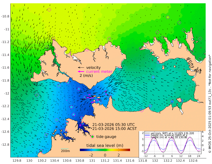 147cm/s -101T +4cm/s rms + 6cm/s 51T. Darwin_C1 52m 117cm/s -91T +4cm/s rms + 7cm/s -161T. Darwin_CW1 22m 83cm/s -106T +4cm/s rms + 8cm/s 61T. Darwin_CW2 34m 88cm/s -135T +3cm/s rms + 9cm/s 98T. Darwin_CW3 22m 151cm/s -90T +5cm/s rms + 7cm/s 88T. Darwin_C3 56m 74cm/s -115T +2cm/s rms + 9cm/s -126T. Darwin_CTbW 22m 18cm/s 122T +1cm/s rms + 1cm/s -47T. DARBGF 30m 28cm/s 148T +4cm/s rms + 3cm/s 80T. NRSDAR 19m 80cm Goodrich Bank -117cm Point Jenny -114cm Native Point -125cm Fish Reef -151cm Tapa Bay 1cm Point Fawcett (Offshore) -172cm Burge Point -140cm Munkunuwa -70cm Beagle A -183cm Parsons Bank -154cm Fenton Patches -190cm Hancox Shoal Area -190cm Nightcliff -208cm Darwin -166cm Charles Point Patches -168cm Glyde Point -179cm Chambers Bay -178cm Point Stuart -154cm Cape Hotham -162cm Christine Reef -198cm West Alligator Head -199cm East Field Island -136cm Two Hills Bay -136cm Camp Point -146cm Medina Inlet South 12cm South Barlow Point 45cm St. Asaph Bay 79cm Cape Van Dieman 71cm Snake Bay 73cm Cache Point 40cm Point Jahleel (Off) -35cm Cape Don 25cm Port Essington 28cm Smith Point - West 28cm NW Peacock Island 51cm North Of Jones Shoal 15cm Peacock Island -13cm Point David 21cm D'urville Point -20cm Copeland Island -8cm One Tree Point
