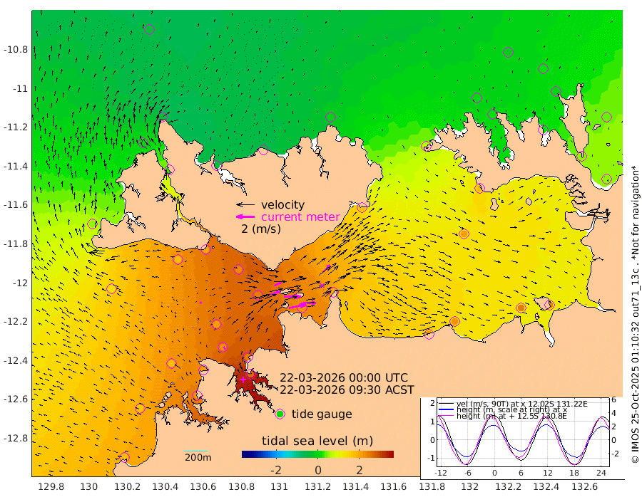 189cm/s 79T +4cm/s rms + 6cm/s 51T. Darwin_C1 52m 142cm/s 93T +4cm/s rms + 7cm/s -161T. Darwin_CW1 22m 109cm/s 71T +4cm/s rms + 8cm/s 61T. Darwin_CW2 34m 113cm/s 45T +3cm/s rms + 9cm/s 98T. Darwin_CW3 22m 183cm/s 89T +5cm/s rms + 7cm/s 88T. Darwin_C3 56m 92cm/s 66T +2cm/s rms + 9cm/s -126T. Darwin_CTbW 22m 15cm/s -41T +1cm/s rms + 1cm/s -47T. DARBGF 30m 32cm/s -38T +4cm/s rms + 3cm/s 80T. NRSDAR 19m -43cm Goodrich Bank 171cm Point Jenny 167cm Native Point 179cm Fish Reef 205cm Tapa Bay 49cm Point Fawcett (Offshore) 224cm Burge Point 179cm Munkunuwa 127cm Beagle A 229cm Parsons Bank 211cm Fenton Patches 242cm Hancox Shoal Area 243cm Nightcliff 260cm Darwin 223cm Charles Point Patches 215cm Glyde Point 221cm Chambers Bay 220cm Point Stuart 199cm Cape Hotham 209cm Christine Reef 242cm West Alligator Head 243cm East Field Island 179cm Two Hills Bay 176cm Camp Point 194cm Medina Inlet South 29cm South Barlow Point -2cm St. Asaph Bay -43cm Cape Van Dieman -37cm Snake Bay -31cm Cache Point 0cm Point Jahleel (Off) 74cm Cape Don 11cm Port Essington 13cm Smith Point - West 11cm NW Peacock Island -13cm North Of Jones Shoal -2cm Peacock Island 45cm Point David 18cm D'urville Point 52cm Copeland Island 41cm One Tree Point