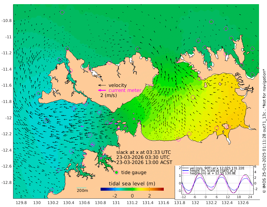 86cm/s -103T +4cm/s rms + 6cm/s 51T. Darwin_C1 52m 50cm/s -88T +4cm/s rms + 7cm/s -161T. Darwin_CW1 22m 81cm/s -109T +4cm/s rms + 8cm/s 61T. Darwin_CW2 34m 20cm/s -97T +3cm/s rms + 9cm/s 98T. Darwin_CW3 22m 85cm/s -94T +5cm/s rms + 7cm/s 88T. Darwin_C3 56m 49cm/s -117T +2cm/s rms + 9cm/s -126T. Darwin_CTbW 22m 72cm/s -89T +1cm/s rms + 1cm/s -47T. DARBGF 30m 70cm/s -59T +4cm/s rms + 3cm/s 80T. NRSDAR 19m -43cm Goodrich Bank -114cm Point Jenny -118cm Native Point -124cm Fish Reef -124cm Tapa Bay -96cm Point Fawcett (Offshore) -126cm Burge Point -155cm Munkunuwa -109cm Beagle A -131cm Parsons Bank -115cm Fenton Patches -98cm Hancox Shoal Area -108cm Nightcliff -120cm Darwin -120cm Charles Point Patches -20cm Glyde Point 91cm Chambers Bay 108cm Point Stuart 17cm Cape Hotham 87cm Christine Reef 130cm West Alligator Head 181cm East Field Island 55cm Two Hills Bay 54cm Camp Point -133cm Medina Inlet South -105cm South Barlow Point -80cm St. Asaph Bay -54cm Cape Van Dieman -60cm Snake Bay -39cm Cache Point -35cm Point Jahleel (Off) -23cm Cape Don -42cm Port Essington -43cm Smith Point - West -36cm NW Peacock Island -31cm North Of Jones Shoal -12cm Peacock Island -34cm Point David -44cm D'urville Point -30cm Copeland Island -30cm One Tree Point