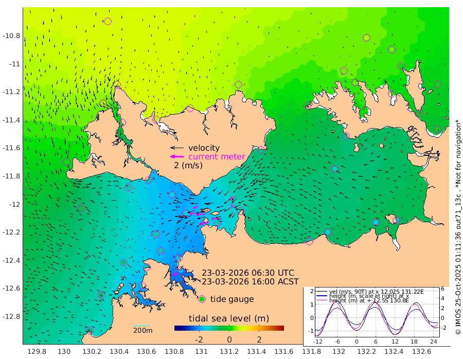 140cm/s -101T +4cm/s rms + 6cm/s 51T. Darwin_C1 52m 105cm/s -90T +4cm/s rms + 7cm/s -161T. Darwin_CW1 22m 75cm/s -107T +4cm/s rms + 8cm/s 61T. Darwin_CW2 34m 74cm/s -134T +3cm/s rms + 9cm/s 98T. Darwin_CW3 22m 131cm/s -91T +5cm/s rms + 7cm/s 88T. Darwin_C3 56m 74cm/s -115T +2cm/s rms + 9cm/s -126T. Darwin_CTbW 22m 12cm/s 127T +1cm/s rms + 1cm/s -47T. DARBGF 30m 20cm/s 156T +4cm/s rms + 3cm/s 80T. NRSDAR 19m 86cm Goodrich Bank -79cm Point Jenny -77cm Native Point -89cm Fish Reef -107cm Tapa Bay 20cm Point Fawcett (Offshore) -125cm Burge Point -110cm Munkunuwa -39cm Beagle A -142cm Parsons Bank -109cm Fenton Patches -142cm Hancox Shoal Area -140cm Nightcliff -153cm Darwin -111cm Charles Point Patches -122cm Glyde Point -129cm Chambers Bay -136cm Point Stuart -115cm Cape Hotham -118cm Christine Reef -154cm West Alligator Head -149cm East Field Island -102cm Two Hills Bay -90cm Camp Point -105cm Medina Inlet South 26cm South Barlow Point 57cm St. Asaph Bay 84cm Cape Van Dieman 77cm Snake Bay 80cm Cache Point 50cm Point Jahleel (Off) -14cm Cape Don 37cm Port Essington 36cm Smith Point - West 37cm NW Peacock Island 60cm North Of Jones Shoal 18cm Peacock Island -1cm Point David 30cm D'urville Point -7cm Copeland Island 6cm One Tree Point