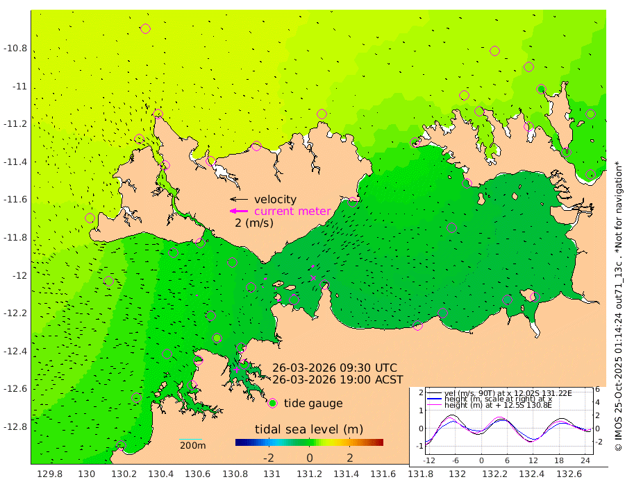 48cm/s -101T +4cm/s rms + 6cm/s 51T. Darwin_C1 52m 23cm/s -90T +4cm/s rms + 7cm/s -161T. Darwin_CW1 22m 8cm/s -118T +4cm/s rms + 8cm/s 61T. Darwin_CW2 34m 29cm/s -134T +3cm/s rms + 9cm/s 98T. Darwin_CW3 22m 11cm/s -90T +5cm/s rms + 7cm/s 88T. Darwin_C3 56m 29cm/s -116T +2cm/s rms + 9cm/s -126T. Darwin_CTbW 22m 17cm/s 95T +1cm/s rms + 1cm/s -47T. DARBGF 30m 18cm/s 133T +4cm/s rms + 3cm/s 80T. NRSDAR 19m 80cm Goodrich Bank 24cm Point Jenny 27cm Native Point 22cm Fish Reef 21cm Tapa Bay 63cm Point Fawcett (Offshore) 16cm Burge Point 18cm Munkunuwa 37cm Beagle A 6cm Parsons Bank 14cm Fenton Patches 2cm Hancox Shoal Area 4cm Nightcliff 14cm Darwin 37cm Charles Point Patches -12cm Glyde Point -46cm Chambers Bay -61cm Point Stuart -25cm Cape Hotham -42cm Christine Reef -75cm West Alligator Head -83cm East Field Island -33cm Two Hills Bay -14cm Camp Point 28cm Medina Inlet South 70cm South Barlow Point 75cm St. Asaph Bay 79cm Cape Van Dieman 81cm Snake Bay 74cm Cache Point 58cm Point Jahleel (Off) 29cm Cape Don 57cm Port Essington 52cm Smith Point - West 52cm NW Peacock Island 66cm North Of Jones Shoal 22cm Peacock Island 34cm Point David 49cm D'urville Point 28cm Copeland Island 40cm One Tree Point