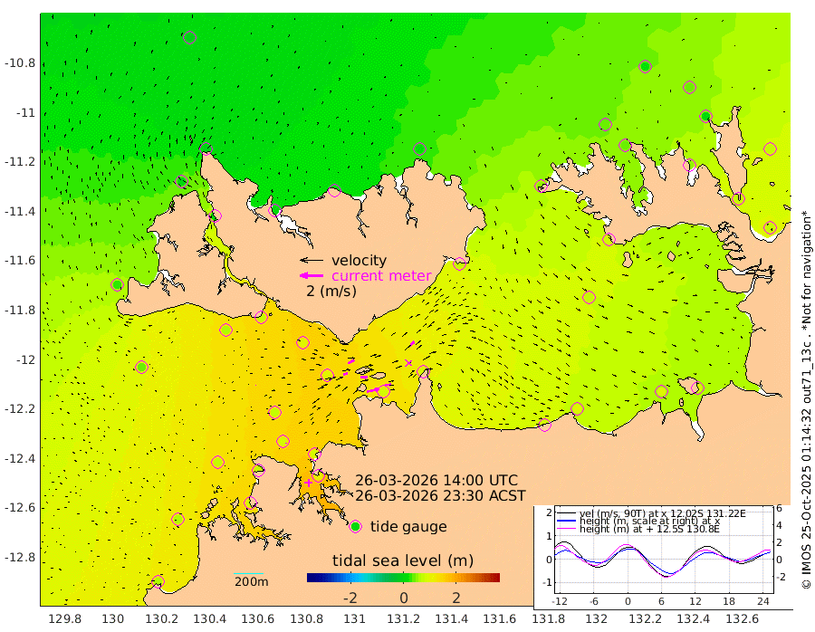 109cm/s 78T +4cm/s rms + 6cm/s 51T. Darwin_C1 52m 54cm/s 90T +4cm/s rms + 7cm/s -161T. Darwin_CW1 22m 36cm/s 75T +4cm/s rms + 8cm/s 61T. Darwin_CW2 34m 58cm/s 44T +3cm/s rms + 9cm/s 98T. Darwin_CW3 22m 59cm/s 90T +5cm/s rms + 7cm/s 88T. Darwin_C3 56m 61cm/s 64T +2cm/s rms + 9cm/s -126T. Darwin_CTbW 22m 3cm/s 45T +1cm/s rms + 1cm/s -47T. DARBGF 30m 5cm/s 4T +4cm/s rms + 3cm/s 80T. NRSDAR 19m -7cm Goodrich Bank 62cm Point Jenny 59cm Native Point 72cm Fish Reef 74cm Tapa Bay 24cm Point Fawcett (Offshore) 79cm Burge Point 63cm Munkunuwa 44cm Beagle A 98cm Parsons Bank 73cm Fenton Patches 94cm Hancox Shoal Area 82cm Nightcliff 102cm Darwin 87cm Charles Point Patches 89cm Glyde Point 82cm Chambers Bay 93cm Point Stuart 87cm Cape Hotham 74cm Christine Reef 97cm West Alligator Head 91cm East Field Island 85cm Two Hills Bay 68cm Camp Point 73cm Medina Inlet South 21cm South Barlow Point 1cm St. Asaph Bay -4cm Cape Van Dieman 5cm Snake Bay 3cm Cache Point 16cm Point Jahleel (Off) 54cm Cape Don 38cm Port Essington 38cm Smith Point - West 42cm NW Peacock Island 21cm North Of Jones Shoal 11cm Peacock Island 75cm Point David 49cm D'urville Point 78cm Copeland Island 68cm One Tree Point