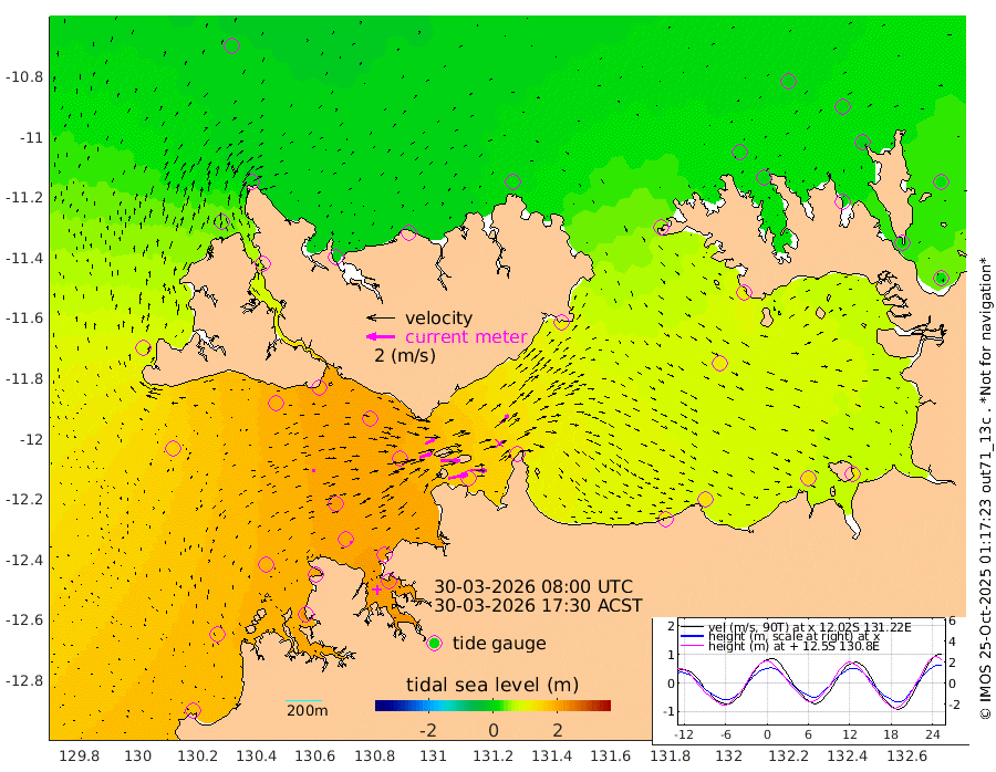 139cm/s 78T +4cm/s rms + 6cm/s 51T. Darwin_C1 52m 118cm/s 93T +4cm/s rms + 7cm/s -161T. Darwin_CW1 22m 92cm/s 72T +4cm/s rms + 8cm/s 61T. Darwin_CW2 34m 81cm/s 45T +3cm/s rms + 9cm/s 98T. Darwin_CW3 22m 137cm/s 89T +5cm/s rms + 7cm/s 88T. Darwin_C3 56m 73cm/s 65T +2cm/s rms + 9cm/s -126T. Darwin_CTbW 22m 22cm/s 72T +1cm/s rms + 1cm/s -47T. DARBGF 30m 14cm/s 99T +4cm/s rms + 3cm/s 80T. NRSDAR 19m -8cm Goodrich Bank 171cm Point Jenny 171cm Native Point 184cm Fish Reef 193cm Tapa Bay 80cm Point Fawcett (Offshore) 216cm Burge Point 184cm Munkunuwa 151cm Beagle A 197cm Parsons Bank 206cm Fenton Patches 193cm Hancox Shoal Area 207cm Nightcliff 223cm Darwin 199cm Charles Point Patches 166cm Glyde Point 133cm Chambers Bay 129cm Point Stuart 139cm Cape Hotham 121cm Christine Reef 140cm West Alligator Head 132cm East Field Island 110cm Two Hills Bay 117cm Camp Point 188cm Medina Inlet South 60cm South Barlow Point 35cm St. Asaph Bay -5cm Cape Van Dieman -2cm Snake Bay -3cm Cache Point 13cm Point Jahleel (Off) 55cm Cape Don 12cm Port Essington 9cm Smith Point - West 3cm NW Peacock Island -10cm North Of Jones Shoal -3cm Peacock Island 14cm Point David 7cm D'urville Point 15cm Copeland Island 13cm One Tree Point