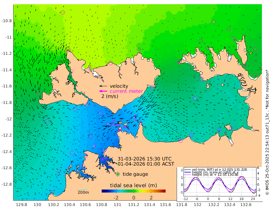 118cm/s -101T +4cm/s rms + 6cm/s 51T. Darwin_C1 52m 106cm/s -92T +4cm/s rms + 7cm/s -161T. Darwin_CW1 22m 68cm/s -107T +4cm/s rms + 8cm/s 61T. Darwin_CW2 34m 78cm/s -137T +3cm/s rms + 9cm/s 98T. Darwin_CW3 22m 115cm/s -91T +5cm/s rms + 7cm/s 88T. Darwin_C3 56m 56cm/s -116T +2cm/s rms + 9cm/s -126T. Darwin_CTbW 22m 12cm/s 132T +1cm/s rms + 1cm/s -47T. DARBGF 30m 18cm/s 149T +4cm/s rms + 3cm/s 80T. NRSDAR 19m 46cm Goodrich Bank -132cm Point Jenny -130cm Native Point -154cm Fish Reef -157cm Tapa Bay -29cm Point Fawcett (Offshore) -192cm Burge Point -147cm Munkunuwa -115cm Beagle A -182cm Parsons Bank -185cm Fenton Patches -182cm Hancox Shoal Area -188cm Nightcliff -210cm Darwin -176cm Charles Point Patches -173cm Glyde Point -163cm Chambers Bay -172cm Point Stuart -157cm Cape Hotham -151cm Christine Reef -189cm West Alligator Head -195cm East Field Island -134cm Two Hills Bay -135cm Camp Point -157cm Medina Inlet South -18cm South Barlow Point 11cm St. Asaph Bay 45cm Cape Van Dieman 41cm Snake Bay 38cm Cache Point 13cm Point Jahleel (Off) -44cm Cape Don 6cm Port Essington 8cm Smith Point - West 10cm NW Peacock Island 32cm North Of Jones Shoal 9cm Peacock Island -12cm Point David 5cm D'urville Point -17cm Copeland Island -9cm One Tree Point