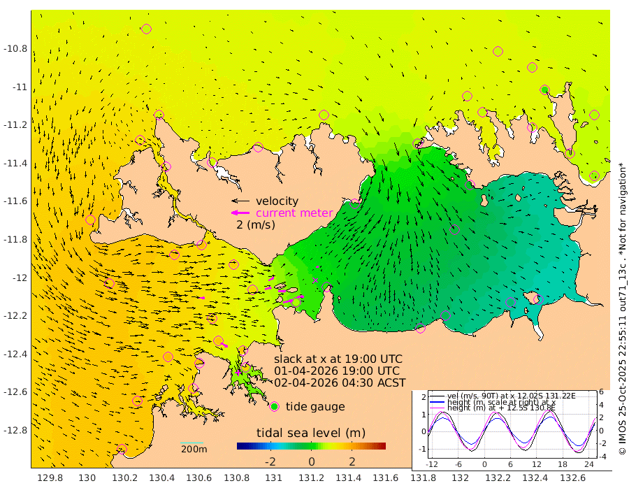 110cm/s 78T +4cm/s rms + 6cm/s 51T. Darwin_C1 52m 77cm/s 86T +4cm/s rms + 7cm/s -161T. Darwin_CW1 22m 71cm/s 75T +4cm/s rms + 8cm/s 61T. Darwin_CW2 34m 27cm/s 64T +3cm/s rms + 9cm/s 98T. Darwin_CW3 22m 82cm/s 87T +5cm/s rms + 7cm/s 88T. Darwin_C3 56m 67cm/s 64T +2cm/s rms + 9cm/s -126T. Darwin_CTbW 22m 85cm/s 91T +1cm/s rms + 1cm/s -47T. DARBGF 30m 86cm/s 121T +4cm/s rms + 3cm/s 80T. NRSDAR 19m 71cm Goodrich Bank 165cm Point Jenny 165cm Native Point 169cm Fish Reef 172cm Tapa Bay 151cm Point Fawcett (Offshore) 157cm Burge Point 177cm Munkunuwa 154cm Beagle A 154cm Parsons Bank 152cm Fenton Patches 137cm Hancox Shoal Area 158cm Nightcliff 152cm Darwin 164cm Charles Point Patches 57cm Glyde Point -34cm Chambers Bay -63cm Point Stuart 24cm Cape Hotham -39cm Christine Reef -82cm West Alligator Head -131cm East Field Island -13cm Two Hills Bay -13cm Camp Point 169cm Medina Inlet South 134cm South Barlow Point 119cm St. Asaph Bay 82cm Cape Van Dieman 84cm Snake Bay 76cm Cache Point 68cm Point Jahleel (Off) 59cm Cape Don 71cm Port Essington 74cm Smith Point - West 65cm NW Peacock Island 70cm North Of Jones Shoal 25cm Peacock Island 58cm Point David 72cm D'urville Point 55cm Copeland Island 60cm One Tree Point