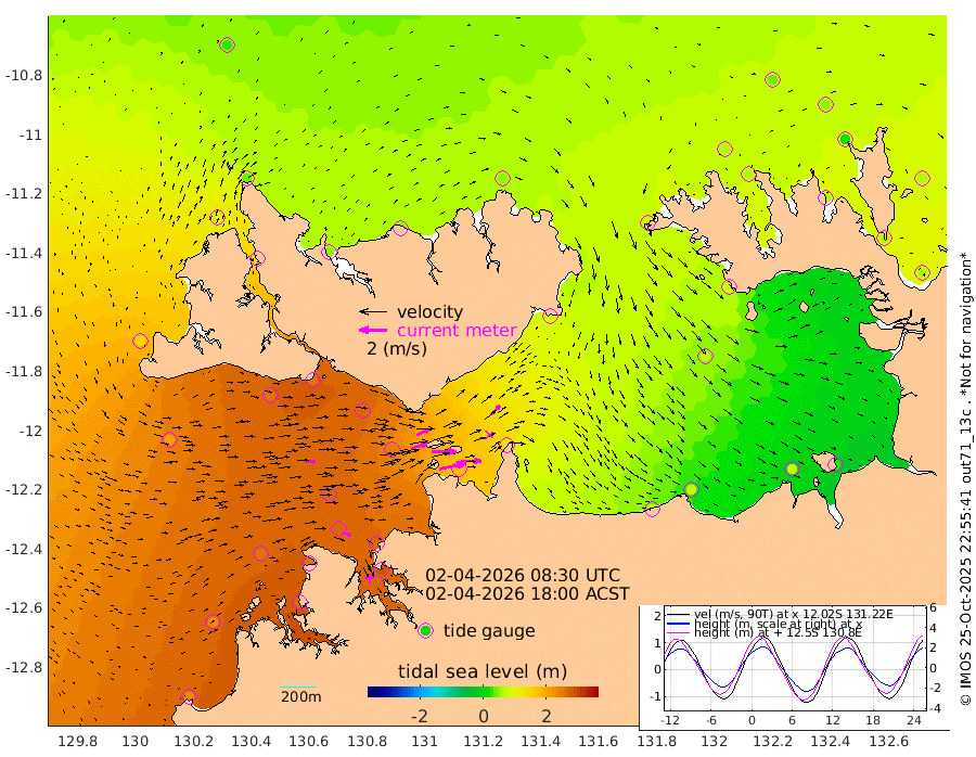 194cm/s 78T +4cm/s rms + 6cm/s 51T. Darwin_C1 52m 147cm/s 91T +4cm/s rms + 7cm/s -161T. Darwin_CW1 22m 119cm/s 74T +4cm/s rms + 8cm/s 61T. Darwin_CW2 34m 97cm/s 46T +3cm/s rms + 9cm/s 98T. Darwin_CW3 22m 175cm/s 89T +5cm/s rms + 7cm/s 88T. Darwin_C3 56m 99cm/s 65T +2cm/s rms + 9cm/s -126T. Darwin_CTbW 22m 63cm/s 86T +1cm/s rms + 1cm/s -47T. DARBGF 30m 62cm/s 114T +4cm/s rms + 3cm/s 80T. NRSDAR 19m 32cm Goodrich Bank 227cm Point Jenny 227cm Native Point 249cm Fish Reef 251cm Tapa Bay 141cm Point Fawcett (Offshore) 268cm Burge Point 249cm Munkunuwa 210cm Beagle A 261cm Parsons Bank 261cm Fenton Patches 241cm Hancox Shoal Area 261cm Nightcliff 283cm Darwin 265cm Charles Point Patches 177cm Glyde Point 86cm Chambers Bay 72cm Point Stuart 131cm Cape Hotham 75cm Christine Reef 68cm West Alligator Head 33cm East Field Island 88cm Two Hills Bay 90cm Camp Point 255cm Medina Inlet South 130cm South Barlow Point 90cm St. Asaph Bay 41cm Cape Van Dieman 50cm Snake Bay 39cm Cache Point 50cm Point Jahleel (Off) 86cm Cape Don 61cm Port Essington 61cm Smith Point - West 53cm NW Peacock Island 38cm North Of Jones Shoal 15cm Peacock Island 61cm Point David 62cm D'urville Point 61cm Copeland Island 62cm One Tree Point
