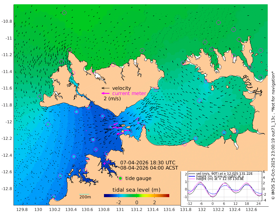 196cm/s -101T +4cm/s rms + 6cm/s 51T. Darwin_C1 52m 154cm/s -91T +4cm/s rms + 7cm/s -161T. Darwin_CW1 22m 89cm/s -106T +4cm/s rms + 8cm/s 61T. Darwin_CW2 34m 97cm/s -135T +3cm/s rms + 9cm/s 98T. Darwin_CW3 22m 153cm/s -90T +5cm/s rms + 7cm/s 88T. Darwin_C3 56m 114cm/s -115T +2cm/s rms + 9cm/s -126T. Darwin_CTbW 22m 12cm/s -122T +1cm/s rms + 1cm/s -47T. DARBGF 30m 10cm/s -163T +4cm/s rms + 3cm/s 80T. NRSDAR 19m -14cm Goodrich Bank -154cm Point Jenny -153cm Native Point -165cm Fish Reef -184cm Tapa Bay -85cm Point Fawcett (Offshore) -188cm Burge Point -160cm Munkunuwa -125cm Beagle A -196cm Parsons Bank -178cm Fenton Patches -202cm Hancox Shoal Area -209cm Nightcliff -227cm Darwin -203cm Charles Point Patches -181cm Glyde Point -163cm Chambers Bay -164cm Point Stuart -164cm Cape Hotham -150cm Christine Reef -177cm West Alligator Head -171cm East Field Island -149cm Two Hills Bay -143cm Camp Point -182cm Medina Inlet South -70cm South Barlow Point -45cm St. Asaph Bay -15cm Cape Van Dieman -29cm Snake Bay -23cm Cache Point -42cm Point Jahleel (Off) -89cm Cape Don -50cm Port Essington -50cm Smith Point - West -49cm NW Peacock Island -38cm North Of Jones Shoal -15cm Peacock Island -74cm Point David -53cm D'urville Point -74cm Copeland Island -73cm One Tree Point