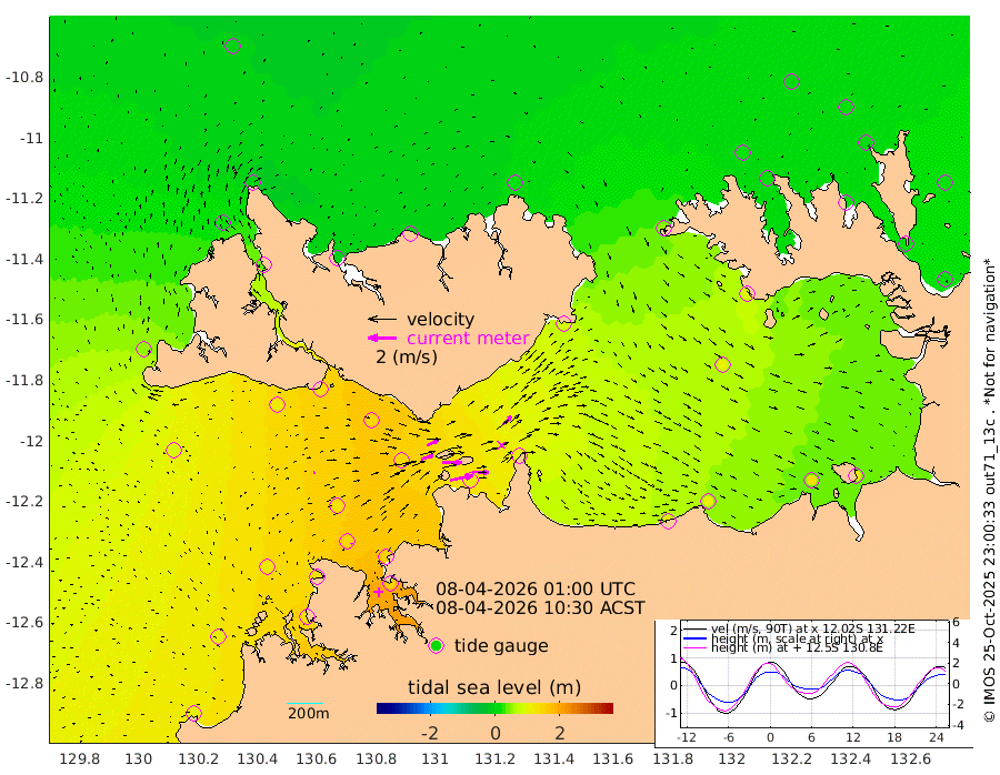 163cm/s 78T +4cm/s rms + 6cm/s 51T. Darwin_C1 52m 117cm/s 93T +4cm/s rms + 7cm/s -161T. Darwin_CW1 22m 84cm/s 72T +4cm/s rms + 8cm/s 61T. Darwin_CW2 34m 87cm/s 47T +3cm/s rms + 9cm/s 98T. Darwin_CW3 22m 136cm/s 89T +5cm/s rms + 7cm/s 88T. Darwin_C3 56m 87cm/s 66T +2cm/s rms + 9cm/s -126T. Darwin_CTbW 22m 12cm/s 57T +1cm/s rms + 1cm/s -47T. DARBGF 30m 8cm/s 23T +4cm/s rms + 3cm/s 80T. NRSDAR 19m -8cm Goodrich Bank 110cm Point Jenny 109cm Native Point 116cm Fish Reef 130cm Tapa Bay 51cm Point Fawcett (Offshore) 128cm Burge Point 117cm Munkunuwa 86cm Beagle A 135cm Parsons Bank 126cm Fenton Patches 143cm Hancox Shoal Area 149cm Nightcliff 154cm Darwin 136cm Charles Point Patches 121cm Glyde Point 116cm Chambers Bay 112cm Point Stuart 107cm Cape Hotham 110cm Christine Reef 125cm West Alligator Head 119cm East Field Island 98cm Two Hills Bay 89cm Camp Point 126cm Medina Inlet South 37cm South Barlow Point 21cm St. Asaph Bay -8cm Cape Van Dieman -4cm Snake Bay -3cm Cache Point 13cm Point Jahleel (Off) 47cm Cape Don 13cm Port Essington 18cm Smith Point - West 12cm NW Peacock Island 5cm North Of Jones Shoal 2cm Peacock Island 18cm Point David 16cm D'urville Point 20cm Copeland Island 20cm One Tree Point