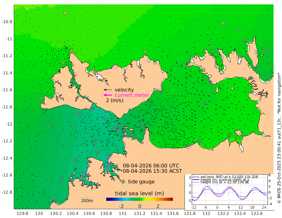 101cm/s -102T +4cm/s rms + 6cm/s 51T. Darwin_C1 52m 59cm/s -90T +4cm/s rms + 7cm/s -161T. Darwin_CW1 22m 59cm/s -108T +4cm/s rms + 8cm/s 61T. Darwin_CW2 34m 41cm/s -129T +3cm/s rms + 9cm/s 98T. Darwin_CW3 22m 75cm/s -91T +5cm/s rms + 7cm/s 88T. Darwin_C3 56m 60cm/s -115T +2cm/s rms + 9cm/s -126T. Darwin_CTbW 22m 15cm/s -98T +1cm/s rms + 1cm/s -47T. DARBGF 30m 12cm/s -96T +4cm/s rms + 3cm/s 80T. NRSDAR 19m 42cm Goodrich Bank -37cm Point Jenny -36cm Native Point -41cm Fish Reef -51cm Tapa Bay 10cm Point Fawcett (Offshore) -55cm Burge Point -61cm Munkunuwa -16cm Beagle A -76cm Parsons Bank -49cm Fenton Patches -71cm Hancox Shoal Area -73cm Nightcliff -75cm Darwin -55cm Charles Point Patches -38cm Glyde Point -18cm Chambers Bay -12cm Point Stuart -27cm Cape Hotham -17cm Christine Reef -13cm West Alligator Head 2cm East Field Island -15cm Two Hills Bay -8cm Camp Point -55cm Medina Inlet South 1cm South Barlow Point 23cm St. Asaph Bay 40cm Cape Van Dieman 32cm Snake Bay 42cm Cache Point 26cm Point Jahleel (Off) -1cm Cape Don 14cm Port Essington 10cm Smith Point - West 11cm NW Peacock Island 23cm North Of Jones Shoal 6cm Peacock Island -7cm Point David 4cm D'urville Point -12cm Copeland Island -4cm One Tree Point