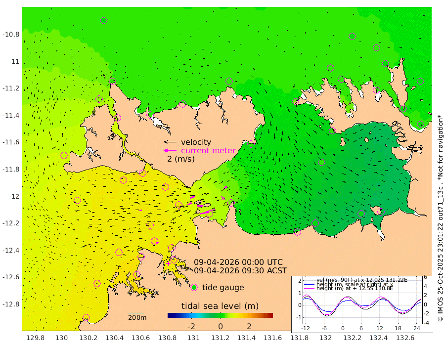 144cm/s 77T +4cm/s rms + 6cm/s 51T. Darwin_C1 52m 86cm/s 91T +4cm/s rms + 7cm/s -161T. Darwin_CW1 22m 76cm/s 73T +4cm/s rms + 8cm/s 61T. Darwin_CW2 34m 61cm/s 52T +3cm/s rms + 9cm/s 98T. Darwin_CW3 22m 101cm/s 89T +5cm/s rms + 7cm/s 88T. Darwin_C3 56m 84cm/s 65T +2cm/s rms + 9cm/s -126T. Darwin_CTbW 22m 37cm/s 85T +1cm/s rms + 1cm/s -47T. DARBGF 30m 35cm/s 109T +4cm/s rms + 3cm/s 80T. NRSDAR 19m 21cm Goodrich Bank 116cm Point Jenny 117cm Native Point 113cm Fish Reef 128cm Tapa Bay 69cm Point Fawcett (Offshore) 127cm Burge Point 132cm Munkunuwa 101cm Beagle A 131cm Parsons Bank 125cm Fenton Patches 126cm Hancox Shoal Area 137cm Nightcliff 134cm Darwin 126cm Charles Point Patches 71cm Glyde Point 21cm Chambers Bay 4cm Point Stuart 43cm Cape Hotham 33cm Christine Reef 2cm West Alligator Head -23cm East Field Island 23cm Two Hills Bay 23cm Camp Point 126cm Medina Inlet South 71cm South Barlow Point 52cm St. Asaph Bay 23cm Cape Van Dieman 26cm Snake Bay 20cm Cache Point 25cm Point Jahleel (Off) 35cm Cape Don 24cm Port Essington 32cm Smith Point - West 24cm NW Peacock Island 18cm North Of Jones Shoal 6cm Peacock Island 14cm Point David 28cm D'urville Point 14cm Copeland Island 15cm One Tree Point