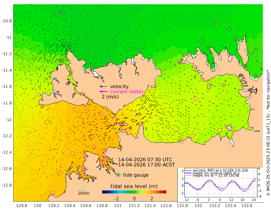 119cm/s 78T +4cm/s rms + 6cm/s 51T. Darwin_C1 52m 93cm/s 93T +4cm/s rms + 7cm/s -161T. Darwin_CW1 22m 78cm/s 72T +4cm/s rms + 8cm/s 61T. Darwin_CW2 34m 72cm/s 44T +3cm/s rms + 9cm/s 98T. Darwin_CW3 22m 116cm/s 89T +5cm/s rms + 7cm/s 88T. Darwin_C3 56m 64cm/s 66T +2cm/s rms + 9cm/s -126T. Darwin_CTbW 22m 21cm/s 76T +1cm/s rms + 1cm/s -47T. DARBGF 30m 17cm/s 102T +4cm/s rms + 3cm/s 80T. NRSDAR 19m -7cm Goodrich Bank 145cm Point Jenny 144cm Native Point 152cm Fish Reef 162cm Tapa Bay 67cm Point Fawcett (Offshore) 180cm Burge Point 149cm Munkunuwa 128cm Beagle A 164cm Parsons Bank 174cm Fenton Patches 164cm Hancox Shoal Area 185cm Nightcliff 190cm Darwin 171cm Charles Point Patches 138cm Glyde Point 113cm Chambers Bay 100cm Point Stuart 111cm Cape Hotham 104cm Christine Reef 107cm West Alligator Head 101cm East Field Island 87cm Two Hills Bay 100cm Camp Point 160cm Medina Inlet South 54cm South Barlow Point 31cm St. Asaph Bay -5cm Cape Van Dieman 0cm Snake Bay -3cm Cache Point 10cm Point Jahleel (Off) 49cm Cape Don 12cm Port Essington 9cm Smith Point - West 4cm NW Peacock Island -1cm North Of Jones Shoal 0cm Peacock Island 12cm Point David 8cm D'urville Point 13cm Copeland Island 15cm One Tree Point