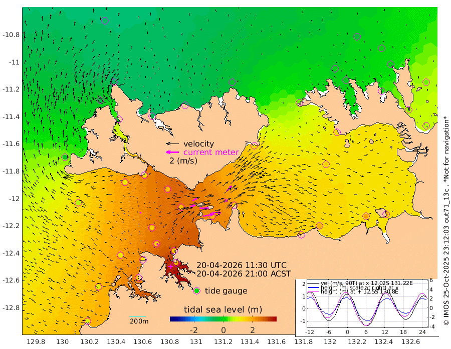 170cm/s 78T +4cm/s rms + 6cm/s 51T. Darwin_C1 52m 126cm/s 92T +4cm/s rms + 7cm/s -161T. Darwin_CW1 22m 82cm/s 72T +4cm/s rms + 8cm/s 61T. Darwin_CW2 34m 112cm/s 43T +3cm/s rms + 9cm/s 98T. Darwin_CW3 22m 144cm/s 90T +5cm/s rms + 7cm/s 88T. Darwin_C3 56m 79cm/s 65T +2cm/s rms + 9cm/s -126T. Darwin_CTbW 22m 22cm/s -68T +1cm/s rms + 1cm/s -47T. DARBGF 30m 33cm/s -40T +4cm/s rms + 3cm/s 80T. NRSDAR 19m -78cm Goodrich Bank 99cm Point Jenny 98cm Native Point 117cm Fish Reef 135cm Tapa Bay -13cm Point Fawcett (Offshore) 160cm Burge Point 123cm Munkunuwa 63cm Beagle A 178cm Parsons Bank 147cm Fenton Patches 180cm Hancox Shoal Area 171cm Nightcliff 200cm Darwin 153cm Charles Point Patches 172cm Glyde Point 170cm Chambers Bay 187cm Point Stuart 162cm Cape Hotham 154cm Christine Reef 205cm West Alligator Head 207cm East Field Island 146cm Two Hills Bay 138cm Camp Point 132cm Medina Inlet South -15cm South Barlow Point -54cm St. Asaph Bay -76cm Cape Van Dieman -62cm Snake Bay -69cm Cache Point -34cm Point Jahleel (Off) 42cm Cape Don -11cm Port Essington -13cm Smith Point - West -8cm NW Peacock Island -44cm North Of Jones Shoal -11cm Peacock Island 50cm Point David 1cm D'urville Point 57cm Copeland Island 36cm One Tree Point