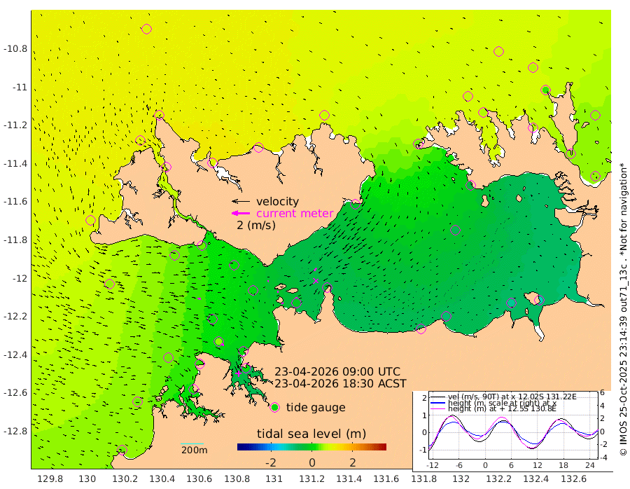 25cm/s -101T +4cm/s rms + 6cm/s 51T. Darwin_C1 52m 15cm/s -89T +4cm/s rms + 7cm/s -161T. Darwin_CW1 22m 1cm/s 162T +4cm/s rms + 8cm/s 61T. Darwin_CW2 34m 35cm/s -138T +3cm/s rms + 9cm/s 98T. Darwin_CW3 22m 10cm/s -87T +5cm/s rms + 7cm/s 88T. Darwin_C3 56m 9cm/s -115T +2cm/s rms + 9cm/s -126T. Darwin_CTbW 22m 34cm/s 95T +1cm/s rms + 1cm/s -47T. DARBGF 30m 34cm/s 129T +4cm/s rms + 3cm/s 80T. NRSDAR 19m 91cm Goodrich Bank 37cm Point Jenny 40cm Native Point 35cm Fish Reef 33cm Tapa Bay 80cm Point Fawcett (Offshore) 24cm Burge Point 34cm Munkunuwa 47cm Beagle A 19cm Parsons Bank 20cm Fenton Patches 8cm Hancox Shoal Area 10cm Nightcliff 22cm Darwin 47cm Charles Point Patches -18cm Glyde Point -75cm Chambers Bay -88cm Point Stuart -35cm Cape Hotham -67cm Christine Reef -108cm West Alligator Head -127cm East Field Island -47cm Two Hills Bay -31cm Camp Point 41cm Medina Inlet South 89cm South Barlow Point 90cm St. Asaph Bay 94cm Cape Van Dieman 97cm Snake Bay 86cm Cache Point 68cm Point Jahleel (Off) 37cm Cape Don 72cm Port Essington 67cm Smith Point - West 67cm NW Peacock Island 80cm North Of Jones Shoal 27cm Peacock Island 51cm Point David 66cm D'urville Point 45cm Copeland Island 56cm One Tree Point