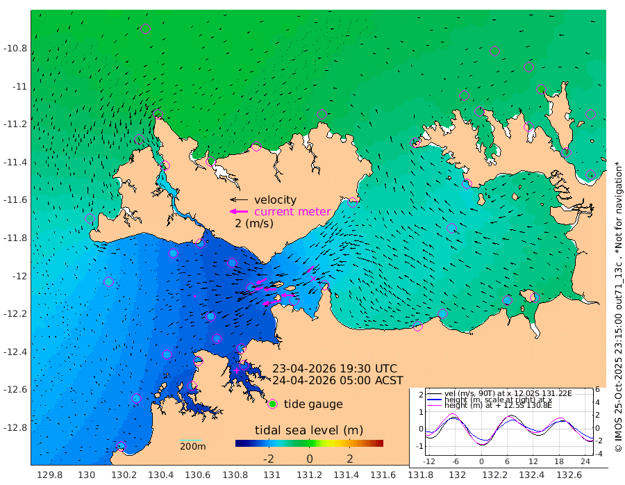 212cm/s -101T +4cm/s rms + 6cm/s 51T. Darwin_C1 52m 148cm/s -90T +4cm/s rms + 7cm/s -161T. Darwin_CW1 22m 83cm/s -105T +4cm/s rms + 8cm/s 61T. Darwin_CW2 34m 102cm/s -134T +3cm/s rms + 9cm/s 98T. Darwin_CW3 22m 136cm/s -90T +5cm/s rms + 7cm/s 88T. Darwin_C3 56m 124cm/s -115T +2cm/s rms + 9cm/s -126T. Darwin_CTbW 22m 20cm/s -106T +1cm/s rms + 1cm/s -47T. DARBGF 30m 12cm/s -104T +4cm/s rms + 3cm/s 80T. NRSDAR 19m -30cm Goodrich Bank -175cm Point Jenny -172cm Native Point -184cm Fish Reef -193cm Tapa Bay -108cm Point Fawcett (Offshore) -206cm Burge Point -174cm Munkunuwa -145cm Beagle A -207cm Parsons Bank -189cm Fenton Patches -203cm Hancox Shoal Area -205cm Nightcliff -228cm Darwin -209cm Charles Point Patches -181cm Glyde Point -157cm Chambers Bay -161cm Point Stuart -163cm Cape Hotham -150cm Christine Reef -170cm West Alligator Head -158cm East Field Island -150cm Two Hills Bay -138cm Camp Point -192cm Medina Inlet South -88cm South Barlow Point -62cm St. Asaph Bay -34cm Cape Van Dieman -42cm Snake Bay -43cm Cache Point -57cm Point Jahleel (Off) -106cm Cape Don -70cm Port Essington -68cm Smith Point - West -67cm NW Peacock Island -53cm North Of Jones Shoal -20cm Peacock Island -87cm Point David -72cm D'urville Point -87cm Copeland Island -89cm One Tree Point
