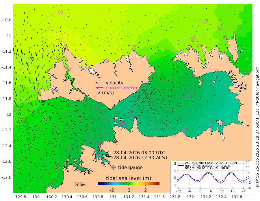 9cm/s 74T +4cm/s rms + 6cm/s 51T. Darwin_C1 52m 18cm/s -96T +4cm/s rms + 7cm/s -161T. Darwin_CW1 22m 5cm/s -107T +4cm/s rms + 8cm/s 61T. Darwin_CW2 34m 22cm/s -149T +3cm/s rms + 9cm/s 98T. Darwin_CW3 22m 28cm/s -90T +5cm/s rms + 7cm/s 88T. Darwin_C3 56m 18cm/s 63T +2cm/s rms + 9cm/s -126T. Darwin_CTbW 22m 38cm/s 98T +1cm/s rms + 1cm/s -47T. DARBGF 30m 41cm/s 127T +4cm/s rms + 3cm/s 80T. NRSDAR 19m 66cm Goodrich Bank 1cm Point Jenny 4cm Native Point -2cm Fish Reef -15cm Tapa Bay 49cm Point Fawcett (Offshore) -29cm Burge Point -7cm Munkunuwa 23cm Beagle A -30cm Parsons Bank -16cm Fenton Patches -41cm Hancox Shoal Area -30cm Nightcliff -44cm Darwin -25cm Charles Point Patches -57cm Glyde Point -92cm Chambers Bay -102cm Point Stuart -65cm Cape Hotham -79cm Christine Reef -116cm West Alligator Head -133cm East Field Island -62cm Two Hills Bay -68cm Camp Point -10cm Medina Inlet South 57cm South Barlow Point 63cm St. Asaph Bay 68cm Cape Van Dieman 68cm Snake Bay 63cm Cache Point 47cm Point Jahleel (Off) 10cm Cape Don 39cm Port Essington 46cm Smith Point - West 42cm NW Peacock Island 51cm North Of Jones Shoal 17cm Peacock Island 11cm Point David 42cm D'urville Point 7cm Copeland Island 17cm One Tree Point