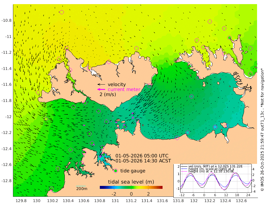 35cm/s -101T +4cm/s rms + 6cm/s 51T. Darwin_C1 52m 39cm/s -89T +4cm/s rms + 7cm/s -161T. Darwin_CW1 22m 12cm/s -107T +4cm/s rms + 8cm/s 61T. Darwin_CW2 34m 51cm/s -139T +3cm/s rms + 9cm/s 98T. Darwin_CW3 22m 46cm/s -89T +5cm/s rms + 7cm/s 88T. Darwin_C3 56m 4cm/s 49T +2cm/s rms + 9cm/s -126T. Darwin_CTbW 22m 48cm/s 98T +1cm/s rms + 1cm/s -47T. DARBGF 30m 52cm/s 130T +4cm/s rms + 3cm/s 80T. NRSDAR 19m 95cm Goodrich Bank 25cm Point Jenny 28cm Native Point 14cm Fish Reef 5cm Tapa Bay 77cm Point Fawcett (Offshore) -6cm Burge Point 7cm Munkunuwa 51cm Beagle A -17cm Parsons Bank 5cm Fenton Patches -29cm Hancox Shoal Area -11cm Nightcliff -30cm Darwin -3cm Charles Point Patches -55cm Glyde Point -105cm Chambers Bay -126cm Point Stuart -68cm Cape Hotham -89cm Christine Reef -147cm West Alligator Head -168cm East Field Island -75cm Two Hills Bay -66cm Camp Point 8cm Medina Inlet South 87cm South Barlow Point 93cm St. Asaph Bay 98cm Cape Van Dieman 99cm Snake Bay 91cm Cache Point 69cm Point Jahleel (Off) 25cm Cape Don 63cm Port Essington 67cm Smith Point - West 65cm NW Peacock Island 78cm North Of Jones Shoal 26cm Peacock Island 35cm Point David 65cm D'urville Point 29cm Copeland Island 41cm One Tree Point
