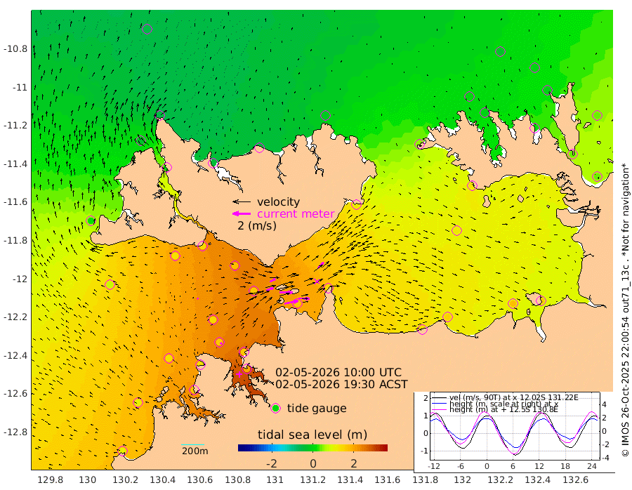 151cm/s 79T +4cm/s rms + 6cm/s 51T. Darwin_C1 52m 124cm/s 93T +4cm/s rms + 7cm/s -161T. Darwin_CW1 22m 83cm/s 71T +4cm/s rms + 8cm/s 61T. Darwin_CW2 34m 94cm/s 44T +3cm/s rms + 9cm/s 98T. Darwin_CW3 22m 144cm/s 90T +5cm/s rms + 7cm/s 88T. Darwin_C3 56m 68cm/s 65T +2cm/s rms + 9cm/s -126T. Darwin_CTbW 22m 10cm/s -42T +1cm/s rms + 1cm/s -47T. DARBGF 30m 21cm/s -35T +4cm/s rms + 3cm/s 80T. NRSDAR 19m -56cm Goodrich Bank 104cm Point Jenny 102cm Native Point 131cm Fish Reef 133cm Tapa Bay 14cm Point Fawcett (Offshore) 159cm Burge Point 127cm Munkunuwa 75cm Beagle A 170cm Parsons Bank 146cm Fenton Patches 165cm Hancox Shoal Area 162cm Nightcliff 197cm Darwin 162cm Charles Point Patches 158cm Glyde Point 142cm Chambers Bay 156cm Point Stuart 143cm Cape Hotham 124cm Christine Reef 169cm West Alligator Head 168cm East Field Island 125cm Two Hills Bay 119cm Camp Point 142cm Medina Inlet South 8cm South Barlow Point -27cm St. Asaph Bay -54cm Cape Van Dieman -42cm Snake Bay -48cm Cache Point -21cm Point Jahleel (Off) 47cm Cape Don 3cm Port Essington -3cm Smith Point - West -2cm NW Peacock Island -24cm North Of Jones Shoal -5cm Peacock Island 39cm Point David 6cm D'urville Point 44cm Copeland Island 36cm One Tree Point