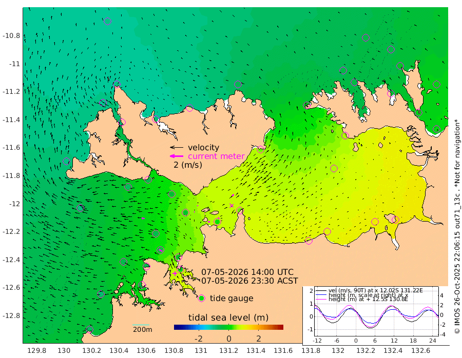 28cm/s 83T +4cm/s rms + 6cm/s 51T. Darwin_C1 52m 15cm/s 88T +4cm/s rms + 7cm/s -161T. Darwin_CW1 22m 5cm/s -67T +4cm/s rms + 8cm/s 61T. Darwin_CW2 34m 34cm/s 41T +3cm/s rms + 9cm/s 98T. Darwin_CW3 22m 3cm/s 108T +5cm/s rms + 7cm/s 88T. Darwin_C3 56m 13cm/s 65T +2cm/s rms + 9cm/s -126T. Darwin_CTbW 22m 45cm/s -87T +1cm/s rms + 1cm/s -47T. DARBGF 30m 54cm/s -55T +4cm/s rms + 3cm/s 80T. NRSDAR 19m -95cm Goodrich Bank -75cm Point Jenny -79cm Native Point -66cm Fish Reef -62cm Tapa Bay -98cm Point Fawcett (Offshore) -63cm Burge Point -71cm Munkunuwa -93cm Beagle A -38cm Parsons Bank -64cm Fenton Patches -23cm Hancox Shoal Area -34cm Nightcliff -31cm Darwin -56cm Charles Point Patches 14cm Glyde Point 81cm Chambers Bay 98cm Point Stuart 40cm Cape Hotham 58cm Christine Reef 114cm West Alligator Head 135cm East Field Island 57cm Two Hills Bay 41cm Camp Point -63cm Medina Inlet South -100cm South Barlow Point -105cm St. Asaph Bay -96cm Cape Van Dieman -89cm Snake Bay -88cm Cache Point -66cm Point Jahleel (Off) -24cm Cape Don -51cm Port Essington -53cm Smith Point - West -45cm NW Peacock Island -55cm North Of Jones Shoal -16cm Peacock Island -2cm Point David -43cm D'urville Point 5cm Copeland Island -8cm One Tree Point