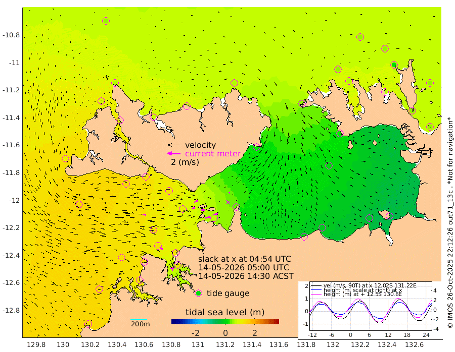 86cm/s 78T +4cm/s rms + 6cm/s 51T. Darwin_C1 52m 47cm/s 85T +4cm/s rms + 7cm/s -161T. Darwin_CW1 22m 50cm/s 74T +4cm/s rms + 8cm/s 61T. Darwin_CW2 34m 19cm/s 67T +3cm/s rms + 9cm/s 98T. Darwin_CW3 22m 54cm/s 87T +5cm/s rms + 7cm/s 88T. Darwin_C3 56m 62cm/s 63T +2cm/s rms + 9cm/s -126T. Darwin_CTbW 22m 51cm/s 91T +1cm/s rms + 1cm/s -47T. DARBGF 30m 50cm/s 121T +4cm/s rms + 3cm/s 80T. NRSDAR 19m 56cm Goodrich Bank 134cm Point Jenny 137cm Native Point 134cm Fish Reef 135cm Tapa Bay 105cm Point Fawcett (Offshore) 142cm Burge Point 138cm Munkunuwa 136cm Beagle A 132cm Parsons Bank 142cm Fenton Patches 114cm Hancox Shoal Area 133cm Nightcliff 128cm Darwin 126cm Charles Point Patches 68cm Glyde Point -1cm Chambers Bay -13cm Point Stuart 42cm Cape Hotham 6cm Christine Reef -23cm West Alligator Head -52cm East Field Island 17cm Two Hills Bay 18cm Camp Point 133cm Medina Inlet South 103cm South Barlow Point 85cm St. Asaph Bay 63cm Cape Van Dieman 69cm Snake Bay 59cm Cache Point 56cm Point Jahleel (Off) 55cm Cape Don 55cm Port Essington 59cm Smith Point - West 55cm NW Peacock Island 47cm North Of Jones Shoal 17cm Peacock Island 52cm Point David 60cm D'urville Point 48cm Copeland Island 49cm One Tree Point