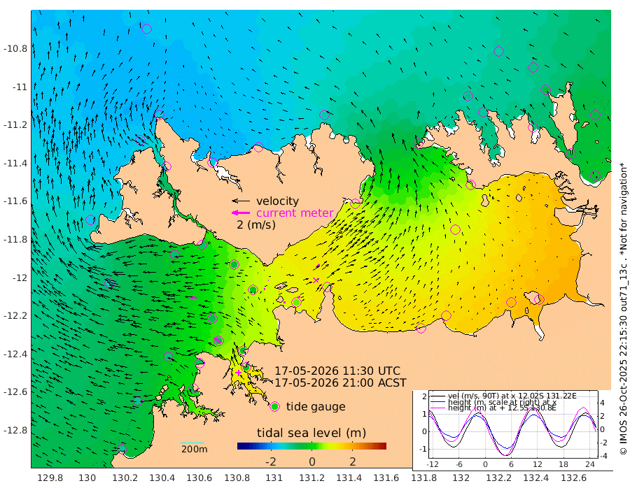 19cm/s 85T +4cm/s rms + 6cm/s 51T. Darwin_C1 52m 28cm/s 90T +4cm/s rms + 7cm/s -161T. Darwin_CW1 22m 11cm/s -83T +4cm/s rms + 8cm/s 61T. Darwin_CW2 34m 45cm/s 41T +3cm/s rms + 9cm/s 98T. Darwin_CW3 22m 8cm/s 108T +5cm/s rms + 7cm/s 88T. Darwin_C3 56m 3cm/s -116T +2cm/s rms + 9cm/s -126T. Darwin_CTbW 22m 82cm/s -86T +1cm/s rms + 1cm/s -47T. DARBGF 30m 95cm/s -55T +4cm/s rms + 3cm/s 80T. NRSDAR 19m -148cm Goodrich Bank -101cm Point Jenny -103cm Native Point -92cm Fish Reef -79cm Tapa Bay -162cm Point Fawcett (Offshore) -61cm Burge Point -87cm Munkunuwa -124cm Beagle A -40cm Parsons Bank -66cm Fenton Patches -21cm Hancox Shoal Area -39cm Nightcliff -25cm Darwin -67cm Charles Point Patches 34cm Glyde Point 116cm Chambers Bay 146cm Point Stuart 59cm Cape Hotham 98cm Christine Reef 172cm West Alligator Head 211cm East Field Island 75cm Two Hills Bay 73cm Camp Point -81cm Medina Inlet South -155cm South Barlow Point -166cm St. Asaph Bay -153cm Cape Van Dieman -146cm Snake Bay -147cm Cache Point -113cm Point Jahleel (Off) -54cm Cape Don -100cm Port Essington -106cm Smith Point - West -95cm NW Peacock Island -117cm North Of Jones Shoal -38cm Peacock Island -40cm Point David -94cm D'urville Point -31cm Copeland Island -52cm One Tree Point