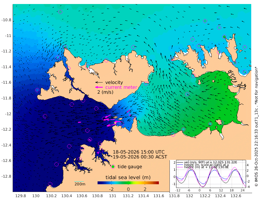 273cm/s -102T +4cm/s rms + 6cm/s 51T. Darwin_C1 52m 209cm/s -90T +4cm/s rms + 7cm/s -161T. Darwin_CW1 22m 161cm/s -107T +4cm/s rms + 8cm/s 61T. Darwin_CW2 34m 114cm/s -130T +3cm/s rms + 9cm/s 98T. Darwin_CW3 22m 222cm/s -91T +5cm/s rms + 7cm/s 88T. Darwin_C3 56m 158cm/s -115T +2cm/s rms + 9cm/s -126T. Darwin_CTbW 22m 81cm/s -95T +1cm/s rms + 1cm/s -47T. DARBGF 30m 61cm/s -66T +4cm/s rms + 3cm/s 80T. NRSDAR 19m -105cm Goodrich Bank -339cm Point Jenny -339cm Native Point -351cm Fish Reef -364cm Tapa Bay -241cm Point Fawcett (Offshore) -383cm Burge Point -346cm Munkunuwa -314cm Beagle A -365cm Parsons Bank -366cm Fenton Patches -347cm Hancox Shoal Area -369cm Nightcliff -393cm Darwin -382cm Charles Point Patches -258cm Glyde Point -141cm Chambers Bay -123cm Point Stuart -202cm Cape Hotham -144cm Christine Reef -117cm West Alligator Head -73cm East Field Island -150cm Two Hills Bay -154cm Camp Point -361cm Medina Inlet South -218cm South Barlow Point -176cm St. Asaph Bay -115cm Cape Van Dieman -124cm Snake Bay -118cm Cache Point -124cm Point Jahleel (Off) -161cm Cape Don -133cm Port Essington -134cm Smith Point - West -125cm NW Peacock Island -110cm North Of Jones Shoal -40cm Peacock Island -127cm Point David -134cm D'urville Point -124cm Copeland Island -129cm One Tree Point