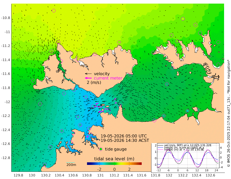 170cm/s -101T +4cm/s rms + 6cm/s 51T. Darwin_C1 52m 136cm/s -90T +4cm/s rms + 7cm/s -161T. Darwin_CW1 22m 79cm/s -107T +4cm/s rms + 8cm/s 61T. Darwin_CW2 34m 82cm/s -134T +3cm/s rms + 9cm/s 98T. Darwin_CW3 22m 125cm/s -91T +5cm/s rms + 7cm/s 88T. Darwin_C3 56m 91cm/s -115T +2cm/s rms + 9cm/s -126T. Darwin_CTbW 22m 10cm/s -120T +1cm/s rms + 1cm/s -47T. DARBGF 30m 11cm/s -124T +4cm/s rms + 3cm/s 80T. NRSDAR 19m 86cm Goodrich Bank -87cm Point Jenny -85cm Native Point -99cm Fish Reef -114cm Tapa Bay 11cm Point Fawcett (Offshore) -129cm Burge Point -122cm Munkunuwa -54cm Beagle A -144cm Parsons Bank -119cm Fenton Patches -140cm Hancox Shoal Area -143cm Nightcliff -149cm Darwin -110cm Charles Point Patches -108cm Glyde Point -94cm Chambers Bay -99cm Point Stuart -96cm Cape Hotham -85cm Christine Reef -113cm West Alligator Head -101cm East Field Island -75cm Two Hills Bay -63cm Camp Point -110cm Medina Inlet South 18cm South Barlow Point 48cm St. Asaph Bay 82cm Cape Van Dieman 77cm Snake Bay 80cm Cache Point 51cm Point Jahleel (Off) -1cm Cape Don 43cm Port Essington 39cm Smith Point - West 43cm NW Peacock Island 66cm North Of Jones Shoal 20cm Peacock Island 12cm Point David 35cm D'urville Point 5cm Copeland Island 20cm One Tree Point