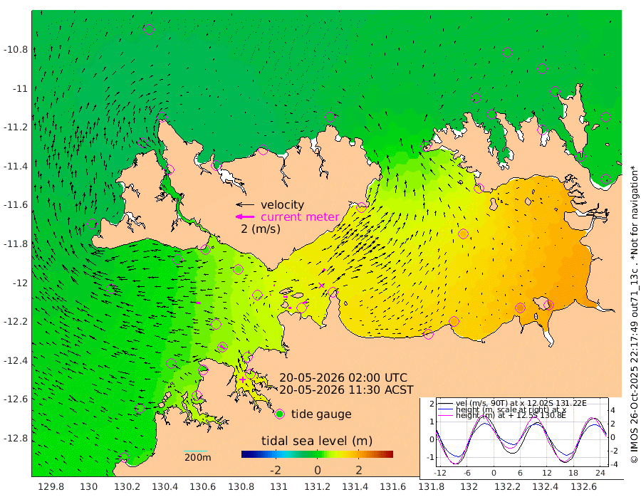 29cm/s 81T +4cm/s rms + 6cm/s 51T. Darwin_C1 52m 48cm/s 88T +4cm/s rms + 7cm/s -161T. Darwin_CW1 22m 6cm/s 77T +4cm/s rms + 8cm/s 61T. Darwin_CW2 34m 44cm/s 39T +3cm/s rms + 9cm/s 98T. Darwin_CW3 22m 42cm/s 94T +5cm/s rms + 7cm/s 88T. Darwin_C3 56m 12cm/s 75T +2cm/s rms + 9cm/s -126T. Darwin_CTbW 22m 52cm/s -82T +1cm/s rms + 1cm/s -47T. DARBGF 30m 64cm/s -53T +4cm/s rms + 3cm/s 80T. NRSDAR 19m -33cm Goodrich Bank 26cm Point Jenny 23cm Native Point 23cm Fish Reef 34cm Tapa Bay -20cm Point Fawcett (Offshore) 51cm Burge Point 4cm Munkunuwa 13cm Beagle A 36cm Parsons Bank 47cm Fenton Patches 60cm Hancox Shoal Area 61cm Nightcliff 62cm Darwin 43cm Charles Point Patches 104cm Glyde Point 180cm Chambers Bay 190cm Point Stuart 117cm Cape Hotham 171cm Christine Reef 216cm West Alligator Head 252cm East Field Island 133cm Two Hills Bay 134cm Camp Point 26cm Medina Inlet South -38cm South Barlow Point -35cm St. Asaph Bay -40cm Cape Van Dieman -41cm Snake Bay -26cm Cache Point -11cm Point Jahleel (Off) 30cm Cape Don -19cm Port Essington -21cm Smith Point - West -19cm NW Peacock Island -21cm North Of Jones Shoal -8cm Peacock Island -11cm Point David -24cm D'urville Point -8cm Copeland Island -6cm One Tree Point