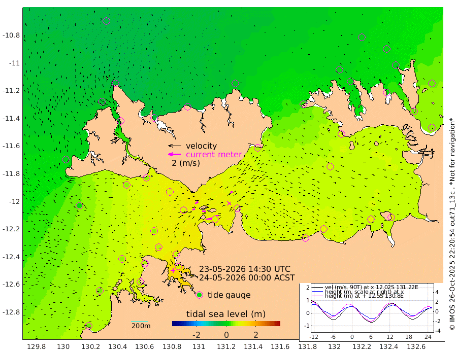 93cm/s 79T +4cm/s rms + 6cm/s 51T. Darwin_C1 52m 45cm/s 91T +4cm/s rms + 7cm/s -161T. Darwin_CW1 22m 35cm/s 70T +4cm/s rms + 8cm/s 61T. Darwin_CW2 34m 55cm/s 45T +3cm/s rms + 9cm/s 98T. Darwin_CW3 22m 50cm/s 89T +5cm/s rms + 7cm/s 88T. Darwin_C3 56m 50cm/s 64T +2cm/s rms + 9cm/s -126T. Darwin_CTbW 22m 5cm/s -64T +1cm/s rms + 1cm/s -47T. DARBGF 30m 14cm/s -43T +4cm/s rms + 3cm/s 80T. NRSDAR 19m -46cm Goodrich Bank 45cm Point Jenny 39cm Native Point 55cm Fish Reef 57cm Tapa Bay -3cm Point Fawcett (Offshore) 63cm Burge Point 46cm Munkunuwa 21cm Beagle A 79cm Parsons Bank 55cm Fenton Patches 82cm Hancox Shoal Area 72cm Nightcliff 83cm Darwin 64cm Charles Point Patches 80cm Glyde Point 100cm Chambers Bay 106cm Point Stuart 86cm Cape Hotham 82cm Christine Reef 115cm West Alligator Head 114cm East Field Island 84cm Two Hills Bay 66cm Camp Point 52cm Medina Inlet South -17cm South Barlow Point -32cm St. Asaph Bay -42cm Cape Van Dieman -40cm Snake Bay -33cm Cache Point -16cm Point Jahleel (Off) 30cm Cape Don 5cm Port Essington 5cm Smith Point - West 8cm NW Peacock Island -10cm North Of Jones Shoal 0cm Peacock Island 44cm Point David 15cm D'urville Point 51cm Copeland Island 38cm One Tree Point