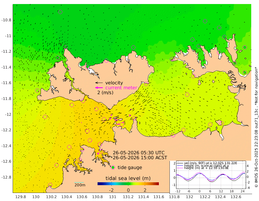 82cm/s 78T +4cm/s rms + 6cm/s 51T. Darwin_C1 52m 54cm/s 92T +4cm/s rms + 7cm/s -161T. Darwin_CW1 22m 54cm/s 73T +4cm/s rms + 8cm/s 61T. Darwin_CW2 34m 46cm/s 46T +3cm/s rms + 9cm/s 98T. Darwin_CW3 22m 81cm/s 90T +5cm/s rms + 7cm/s 88T. Darwin_C3 56m 47cm/s 65T +2cm/s rms + 9cm/s -126T. Darwin_CTbW 22m 10cm/s 66T +1cm/s rms + 1cm/s -47T. DARBGF 30m 6cm/s 72T +4cm/s rms + 3cm/s 80T. NRSDAR 19m -11cm Goodrich Bank 107cm Point Jenny 107cm Native Point 121cm Fish Reef 119cm Tapa Bay 46cm Point Fawcett (Offshore) 137cm Burge Point 109cm Munkunuwa 96cm Beagle A 127cm Parsons Bank 133cm Fenton Patches 123cm Hancox Shoal Area 128cm Nightcliff 145cm Darwin 126cm Charles Point Patches 120cm Glyde Point 108cm Chambers Bay 114cm Point Stuart 106cm Cape Hotham 96cm Christine Reef 123cm West Alligator Head 122cm East Field Island 94cm Two Hills Bay 91cm Camp Point 119cm Medina Inlet South 32cm South Barlow Point 13cm St. Asaph Bay -8cm Cape Van Dieman -5cm Snake Bay -4cm Cache Point 8cm Point Jahleel (Off) 46cm Cape Don 14cm Port Essington 11cm Smith Point - West 9cm NW Peacock Island -6cm North Of Jones Shoal -1cm Peacock Island 23cm Point David 13cm D'urville Point 23cm Copeland Island 21cm One Tree Point