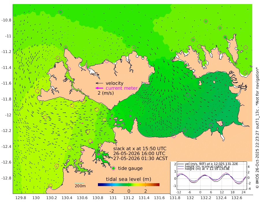 69cm/s 78T +4cm/s rms + 6cm/s 51T. Darwin_C1 52m 30cm/s 88T +4cm/s rms + 7cm/s -161T. Darwin_CW1 22m 43cm/s 74T +4cm/s rms + 8cm/s 61T. Darwin_CW2 34m 18cm/s 64T +3cm/s rms + 9cm/s 98T. Darwin_CW3 22m 50cm/s 87T +5cm/s rms + 7cm/s 88T. Darwin_C3 56m 43cm/s 65T +2cm/s rms + 9cm/s -126T. Darwin_CTbW 22m 45cm/s 92T +1cm/s rms + 1cm/s -47T. DARBGF 30m 43cm/s 120T +4cm/s rms + 3cm/s 80T. NRSDAR 19m 18cm Goodrich Bank 73cm Point Jenny 70cm Native Point 75cm Fish Reef 76cm Tapa Bay 68cm Point Fawcett (Offshore) 61cm Burge Point 79cm Munkunuwa 58cm Beagle A 70cm Parsons Bank 57cm Fenton Patches 64cm Hancox Shoal Area 71cm Nightcliff 64cm Darwin 67cm Charles Point Patches 24cm Glyde Point -3cm Chambers Bay -19cm Point Stuart 16cm Cape Hotham -15cm Christine Reef -25cm West Alligator Head -52cm East Field Island 4cm Two Hills Bay -10cm Camp Point 73cm Medina Inlet South 51cm South Barlow Point 45cm St. Asaph Bay 25cm Cape Van Dieman 26cm Snake Bay 26cm Cache Point 25cm Point Jahleel (Off) 29cm Cape Don 31cm Port Essington 35cm Smith Point - West 30cm NW Peacock Island 32cm North Of Jones Shoal 12cm Peacock Island 33cm Point David 35cm D'urville Point 34cm Copeland Island 34cm One Tree Point