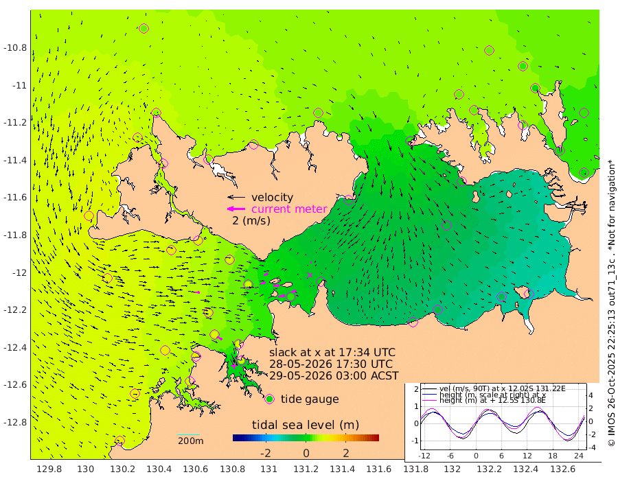 76cm/s 78T +4cm/s rms + 6cm/s 51T. Darwin_C1 52m 50cm/s 86T +4cm/s rms + 7cm/s -161T. Darwin_CW1 22m 59cm/s 75T +4cm/s rms + 8cm/s 61T. Darwin_CW2 34m 13cm/s 87T +3cm/s rms + 9cm/s 98T. Darwin_CW3 22m 71cm/s 87T +5cm/s rms + 7cm/s 88T. Darwin_C3 56m 51cm/s 64T +2cm/s rms + 9cm/s -126T. Darwin_CTbW 22m 65cm/s 91T +1cm/s rms + 1cm/s -47T. DARBGF 30m 66cm/s 120T +4cm/s rms + 3cm/s 80T. NRSDAR 19m 41cm Goodrich Bank 109cm Point Jenny 108cm Native Point 108cm Fish Reef 113cm Tapa Bay 102cm Point Fawcett (Offshore) 92cm Burge Point 119cm Munkunuwa 98cm Beagle A 95cm Parsons Bank 93cm Fenton Patches 86cm Hancox Shoal Area 103cm Nightcliff 89cm Darwin 98cm Charles Point Patches 26cm Glyde Point -30cm Chambers Bay -56cm Point Stuart 4cm Cape Hotham -36cm Christine Reef -67cm West Alligator Head -104cm East Field Island -19cm Two Hills Bay -25cm Camp Point 107cm Medina Inlet South 85cm South Barlow Point 79cm St. Asaph Bay 49cm Cape Van Dieman 48cm Snake Bay 45cm Cache Point 39cm Point Jahleel (Off) 29cm Cape Don 36cm Port Essington 43cm Smith Point - West 33cm NW Peacock Island 40cm North Of Jones Shoal 14cm Peacock Island 22cm Point David 38cm D'urville Point 21cm Copeland Island 24cm One Tree Point