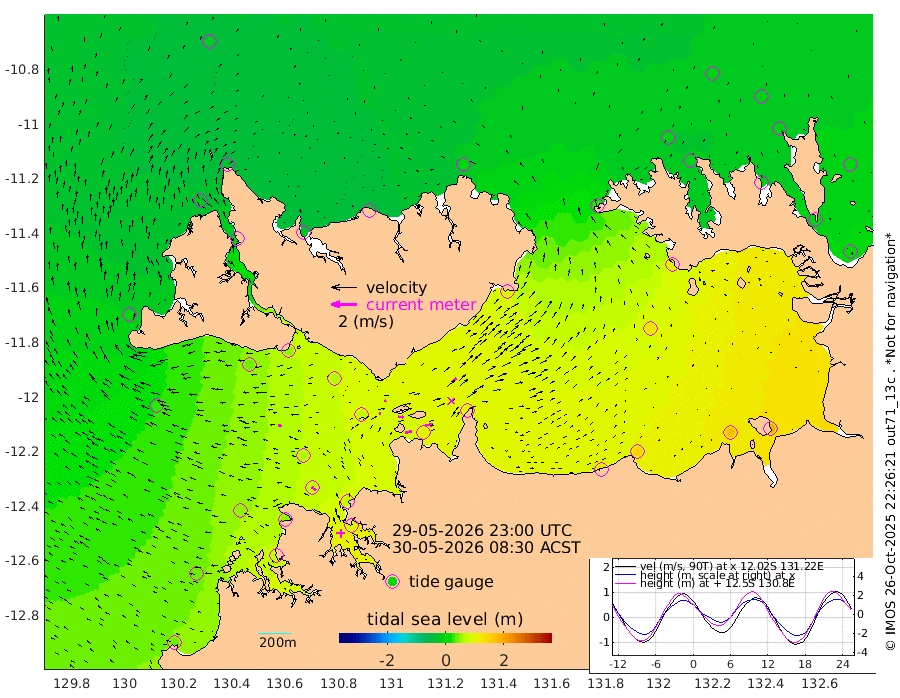 48cm/s 80T +4cm/s rms + 6cm/s 51T. Darwin_C1 52m 61cm/s 89T +4cm/s rms + 7cm/s -161T. Darwin_CW1 22m 13cm/s 76T +4cm/s rms + 8cm/s 61T. Darwin_CW2 34m 44cm/s 39T +3cm/s rms + 9cm/s 98T. Darwin_CW3 22m 45cm/s 94T +5cm/s rms + 7cm/s 88T. Darwin_C3 56m 16cm/s 69T +2cm/s rms + 9cm/s -126T. Darwin_CTbW 22m 33cm/s -79T +1cm/s rms + 1cm/s -47T. DARBGF 30m 43cm/s -52T +4cm/s rms + 3cm/s 80T. NRSDAR 19m -19cm Goodrich Bank 43cm Point Jenny 40cm Native Point 54cm Fish Reef 55cm Tapa Bay 6cm Point Fawcett (Offshore) 74cm Burge Point 40cm Munkunuwa 34cm Beagle A 63cm Parsons Bank 66cm Fenton Patches 74cm Hancox Shoal Area 72cm Nightcliff 86cm Darwin 68cm Charles Point Patches 101cm Glyde Point 137cm Chambers Bay 154cm Point Stuart 111cm Cape Hotham 128cm Christine Reef 174cm West Alligator Head 196cm East Field Island 114cm Two Hills Bay 108cm Camp Point 54cm Medina Inlet South -11cm South Barlow Point -13cm St. Asaph Bay -24cm Cape Van Dieman -23cm Snake Bay -12cm Cache Point 1cm Point Jahleel (Off) 31cm Cape Don -5cm Port Essington -8cm Smith Point - West -7cm NW Peacock Island -9cm North Of Jones Shoal -4cm Peacock Island 1cm Point David -11cm D'urville Point 3cm Copeland Island 4cm One Tree Point