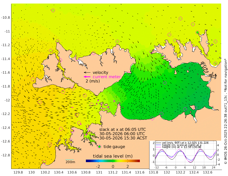 59cm/s 78T +4cm/s rms + 6cm/s 51T. Darwin_C1 52m 42cm/s 79T +4cm/s rms + 7cm/s -161T. Darwin_CW1 22m 39cm/s 76T +4cm/s rms + 8cm/s 61T. Darwin_CW2 34m 7cm/s 106T +3cm/s rms + 9cm/s 98T. Darwin_CW3 22m 43cm/s 87T +5cm/s rms + 7cm/s 88T. Darwin_C3 56m 51cm/s 62T +2cm/s rms + 9cm/s -126T. Darwin_CTbW 22m 47cm/s 92T +1cm/s rms + 1cm/s -47T. DARBGF 30m 46cm/s 122T +4cm/s rms + 3cm/s 80T. NRSDAR 19m 66cm Goodrich Bank 111cm Point Jenny 113cm Native Point 114cm Fish Reef 113cm Tapa Bay 103cm Point Fawcett (Offshore) 113cm Burge Point 108cm Munkunuwa 113cm Beagle A 108cm Parsons Bank 113cm Fenton Patches 95cm Hancox Shoal Area 113cm Nightcliff 113cm Darwin 119cm Charles Point Patches 55cm Glyde Point -10cm Chambers Bay -26cm Point Stuart 30cm Cape Hotham -7cm Christine Reef -40cm West Alligator Head -65cm East Field Island 9cm Two Hills Bay 15cm Camp Point 117cm Medina Inlet South 104cm South Barlow Point 88cm St. Asaph Bay 72cm Cape Van Dieman 81cm Snake Bay 69cm Cache Point 63cm Point Jahleel (Off) 62cm Cape Don 71cm Port Essington 71cm Smith Point - West 69cm NW Peacock Island 69cm North Of Jones Shoal 25cm Peacock Island 69cm Point David 74cm D'urville Point 65cm Copeland Island 71cm One Tree Point