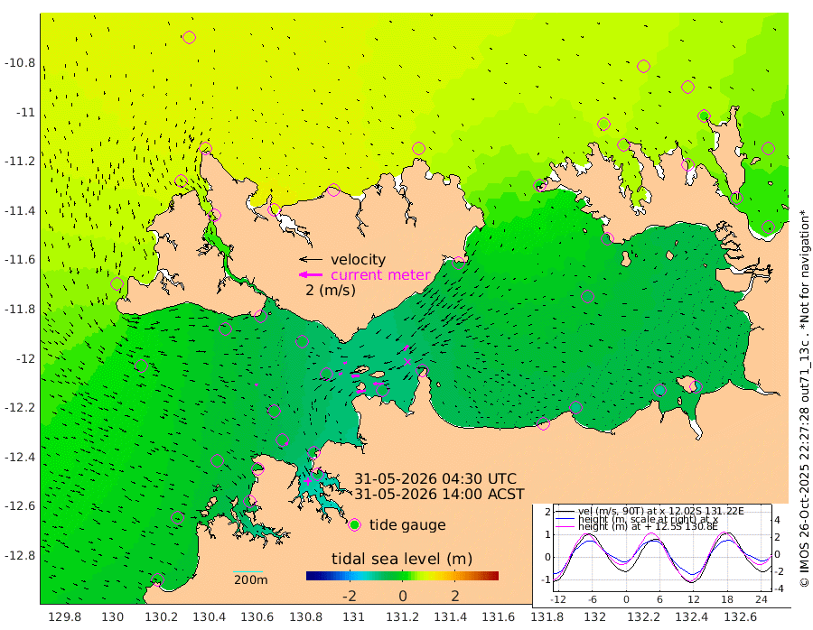 82cm/s -100T +4cm/s rms + 6cm/s 51T. Darwin_C1 52m 85cm/s -91T +4cm/s rms + 7cm/s -161T. Darwin_CW1 22m 29cm/s -106T +4cm/s rms + 8cm/s 61T. Darwin_CW2 34m 59cm/s -135T +3cm/s rms + 9cm/s 98T. Darwin_CW3 22m 66cm/s -91T +5cm/s rms + 7cm/s 88T. Darwin_C3 56m 28cm/s -116T +2cm/s rms + 9cm/s -126T. Darwin_CTbW 22m 22cm/s 103T +1cm/s rms + 1cm/s -47T. DARBGF 30m 26cm/s 138T +4cm/s rms + 3cm/s 80T. NRSDAR 19m 85cm Goodrich Bank -7cm Point Jenny -3cm Native Point -22cm Fish Reef -24cm Tapa Bay 47cm Point Fawcett (Offshore) -32cm Burge Point -27cm Munkunuwa 15cm Beagle A -43cm Parsons Bank -28cm Fenton Patches -49cm Hancox Shoal Area -40cm Nightcliff -55cm Darwin -31cm Charles Point Patches -55cm Glyde Point -78cm Chambers Bay -91cm Point Stuart -57cm Cape Hotham -64cm Christine Reef -107cm West Alligator Head -114cm East Field Island -55cm Two Hills Bay -44cm Camp Point -25cm Medina Inlet South 58cm South Barlow Point 69cm St. Asaph Bay 86cm Cape Van Dieman 87cm Snake Bay 80cm Cache Point 60cm Point Jahleel (Off) 20cm Cape Don 53cm Port Essington 54cm Smith Point - West 57cm NW Peacock Island 68cm North Of Jones Shoal 23cm Peacock Island 38cm Point David 54cm D'urville Point 31cm Copeland Island 40cm One Tree Point