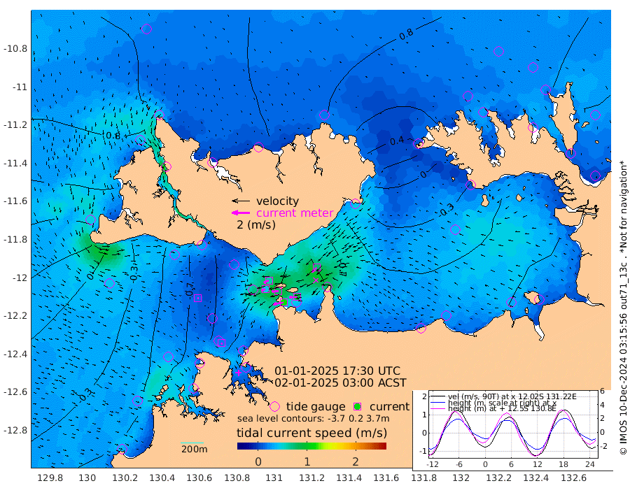 119cm/s -100T +4cm/s rms + 6cm/s 51T. Darwin_C1 52m 91cm/s -92T +4cm/s rms + 7cm/s -161T. Darwin_CW1 22m 46cm/s -107T +4cm/s rms + 8cm/s 61T. Darwin_CW2 34m 74cm/s -136T +3cm/s rms + 9cm/s 98T. Darwin_CW3 22m 78cm/s -91T +5cm/s rms + 7cm/s 88T. Darwin_C3 56m 59cm/s -116T +2cm/s rms + 9cm/s -126T. Darwin_CTbW 22m 13cm/s 113T +1cm/s rms + 1cm/s -47T. DARBGF 30m 17cm/s 152T +4cm/s rms + 3cm/s 80T. NRSDAR 19m 89cm Goodrich Bank -40cm Point Jenny -37cm Native Point -50cm Fish Reef -61cm Tapa Bay 37cm Point Fawcett (Offshore) -75cm Burge Point -62cm Munkunuwa -17cm Beagle A -82cm Parsons Bank -72cm Fenton Patches -89cm Hancox Shoal Area -100cm Nightcliff -94cm Darwin -61cm Charles Point Patches -80cm Glyde Point -101cm Chambers Bay -99cm Point Stuart -78cm Cape Hotham -88cm Christine Reef -117cm West Alligator Head -122cm East Field Island -67cm Two Hills Bay -61cm Camp Point -59cm Medina Inlet South 44cm South Barlow Point 62cm St. Asaph Bay 90cm Cape Van Dieman 86cm Snake Bay 85cm Cache Point 59cm Point Jahleel (Off) 15cm Cape Don 59cm Port Essington 55cm Smith Point - West 58cm NW Peacock Island 68cm North Of Jones Shoal 22cm Peacock Island 38cm Point David 54cm D'urville Point 31cm Copeland Island 40cm One Tree Point