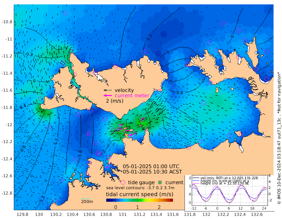 136cm/s 79T +4cm/s rms + 6cm/s 51T. Darwin_C1 52m 90cm/s 92T +4cm/s rms + 7cm/s -161T. Darwin_CW1 22m 71cm/s 71T +4cm/s rms + 8cm/s 61T. Darwin_CW2 34m 87cm/s 43T +3cm/s rms + 9cm/s 98T. Darwin_CW3 22m 114cm/s 89T +5cm/s rms + 7cm/s 88T. Darwin_C3 56m 64cm/s 65T +2cm/s rms + 9cm/s -126T. Darwin_CTbW 22m 8cm/s -50T +1cm/s rms + 1cm/s -47T. DARBGF 30m 18cm/s -35T +4cm/s rms + 3cm/s 80T. NRSDAR 19m -54cm Goodrich Bank 100cm Point Jenny 97cm Native Point 106cm Fish Reef 129cm Tapa Bay 8cm Point Fawcett (Offshore) 136cm Burge Point 109cm Munkunuwa 63cm Beagle A 154cm Parsons Bank 127cm Fenton Patches 162cm Hancox Shoal Area 154cm Nightcliff 167cm Darwin 138cm Charles Point Patches 139cm Glyde Point 145cm Chambers Bay 143cm Point Stuart 131cm Cape Hotham 128cm Christine Reef 155cm West Alligator Head 151cm East Field Island 115cm Two Hills Bay 109cm Camp Point 116cm Medina Inlet South -2cm South Barlow Point -29cm St. Asaph Bay -51cm Cape Van Dieman -46cm Snake Bay -44cm Cache Point -18cm Point Jahleel (Off) 42cm Cape Don 3cm Port Essington 4cm Smith Point - West 7cm NW Peacock Island -22cm North Of Jones Shoal -4cm Peacock Island 54cm Point David 16cm D'urville Point 61cm Copeland Island 41cm One Tree Point