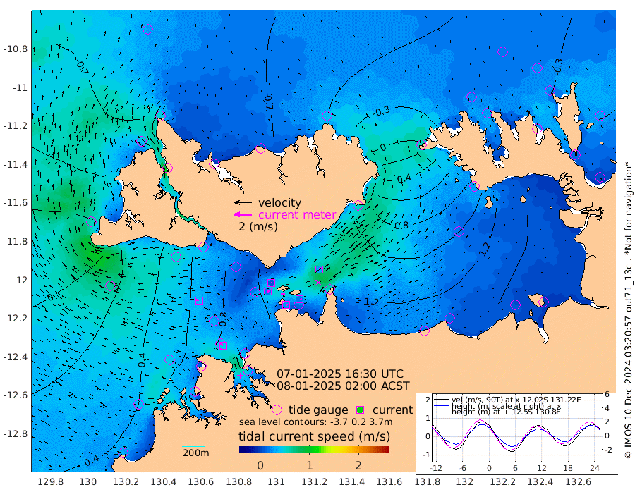 21cm/s 78T +4cm/s rms + 6cm/s 51T. Darwin_C1 52m 21cm/s 88T +4cm/s rms + 7cm/s -161T. Darwin_CW1 22m 19cm/s 70T +4cm/s rms + 8cm/s 61T. Darwin_CW2 34m 30cm/s 41T +3cm/s rms + 9cm/s 98T. Darwin_CW3 22m 47cm/s 91T +5cm/s rms + 7cm/s 88T. Darwin_C3 56m 11cm/s 66T +2cm/s rms + 9cm/s -126T. Darwin_CTbW 22m 39cm/s -81T +1cm/s rms + 1cm/s -47T. DARBGF 30m 47cm/s -52T +4cm/s rms + 3cm/s 80T. NRSDAR 19m -67cm Goodrich Bank 16cm Point Jenny 16cm Native Point 21cm Fish Reef 29cm Tapa Bay -47cm Point Fawcett (Offshore) 49cm Burge Point 14cm Munkunuwa 1cm Beagle A 47cm Parsons Bank 45cm Fenton Patches 57cm Hancox Shoal Area 57cm Nightcliff 63cm Darwin 32cm Charles Point Patches 88cm Glyde Point 133cm Chambers Bay 149cm Point Stuart 95cm Cape Hotham 122cm Christine Reef 169cm West Alligator Head 192cm East Field Island 101cm Two Hills Bay 99cm Camp Point 24cm Medina Inlet South -53cm South Barlow Point -66cm St. Asaph Bay -69cm Cape Van Dieman -65cm Snake Bay -62cm Cache Point -41cm Point Jahleel (Off) 7cm Cape Don -37cm Port Essington -40cm Smith Point - West -36cm NW Peacock Island -53cm North Of Jones Shoal -17cm Peacock Island -6cm Point David -35cm D'urville Point -3cm Copeland Island -11cm One Tree Point