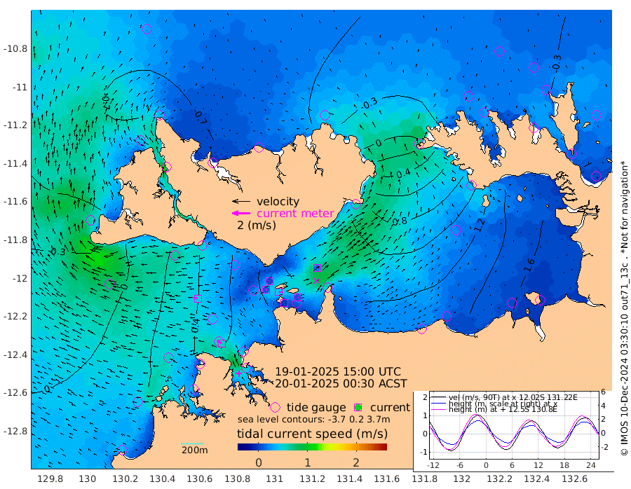 2cm/s -127T +4cm/s rms + 6cm/s 51T. Darwin_C1 52m 8cm/s 83T +4cm/s rms + 7cm/s -161T. Darwin_CW1 22m 10cm/s 75T +4cm/s rms + 8cm/s 61T. Darwin_CW2 34m 21cm/s 39T +3cm/s rms + 9cm/s 98T. Darwin_CW3 22m 44cm/s 93T +5cm/s rms + 7cm/s 88T. Darwin_C3 56m 5cm/s -124T +2cm/s rms + 9cm/s -126T. Darwin_CTbW 22m 47cm/s -82T +1cm/s rms + 1cm/s -47T. DARBGF 30m 57cm/s -52T +4cm/s rms + 3cm/s 80T. NRSDAR 19m -54cm Goodrich Bank -2cm Point Jenny -4cm Native Point 12cm Fish Reef 8cm Tapa Bay -43cm Point Fawcett (Offshore) 26cm Burge Point -7cm Munkunuwa -14cm Beagle A 26cm Parsons Bank 22cm Fenton Patches 36cm Hancox Shoal Area 25cm Nightcliff 48cm Darwin 24cm Charles Point Patches 84cm Glyde Point 144cm Chambers Bay 164cm Point Stuart 96cm Cape Hotham 125cm Christine Reef 186cm West Alligator Head 216cm East Field Island 112cm Two Hills Bay 102cm Camp Point 12cm Medina Inlet South -53cm South Barlow Point -60cm St. Asaph Bay -59cm Cape Van Dieman -56cm Snake Bay -48cm Cache Point -30cm Point Jahleel (Off) 15cm Cape Don -24cm Port Essington -30cm Smith Point - West -27cm NW Peacock Island -38cm North Of Jones Shoal -12cm Peacock Island -8cm Point David -28cm D'urville Point -5cm Copeland Island -6cm One Tree Point