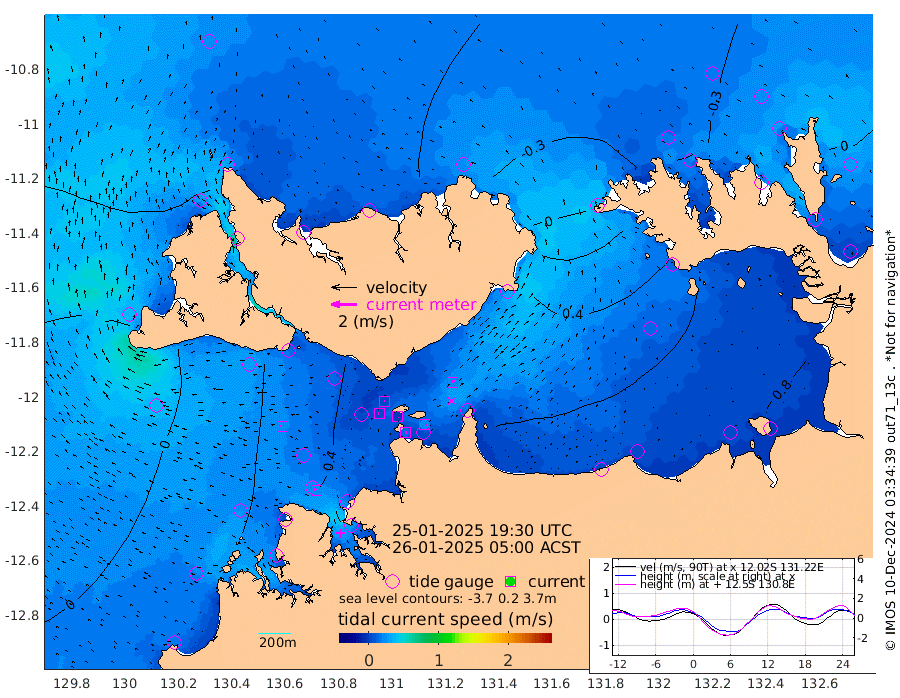 14cm/s 81T +4cm/s rms + 6cm/s 51T. Darwin_C1 52m 22cm/s 94T +4cm/s rms + 7cm/s -161T. Darwin_CW1 22m 4cm/s -80T +4cm/s rms + 8cm/s 61T. Darwin_CW2 34m 24cm/s 32T +3cm/s rms + 9cm/s 98T. Darwin_CW3 22m 1cm/s -168T +5cm/s rms + 7cm/s 88T. Darwin_C3 56m 4cm/s 73T +2cm/s rms + 9cm/s -126T. Darwin_CTbW 22m 22cm/s -87T +1cm/s rms + 1cm/s -47T. DARBGF 30m 23cm/s -57T +4cm/s rms + 3cm/s 80T. NRSDAR 19m -66cm Goodrich Bank -34cm Point Jenny -35cm Native Point -23cm Fish Reef -25cm Tapa Bay -58cm Point Fawcett (Offshore) -16cm Burge Point -31cm Munkunuwa -41cm Beagle A -11cm Parsons Bank -18cm Fenton Patches -5cm Hancox Shoal Area -4cm Nightcliff 0cm Darwin -18cm Charles Point Patches 19cm Glyde Point 45cm Chambers Bay 60cm Point Stuart 30cm Cape Hotham 33cm Christine Reef 68cm West Alligator Head 83cm East Field Island 33cm Two Hills Bay 32cm Camp Point -22cm Medina Inlet South -59cm South Barlow Point -67cm St. Asaph Bay -66cm Cape Van Dieman -61cm Snake Bay -62cm Cache Point -49cm Point Jahleel (Off) -17cm Cape Don -37cm Port Essington -43cm Smith Point - West -38cm NW Peacock Island -43cm North Of Jones Shoal -13cm Peacock Island -7cm Point David -36cm D'urville Point -3cm Copeland Island -10cm One Tree Point