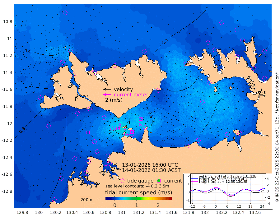 50cm/s 78T +4cm/s rms + 6cm/s 51T. Darwin_C1 52m 29cm/s 83T +4cm/s rms + 7cm/s -161T. Darwin_CW1 22m 33cm/s 74T +4cm/s rms + 8cm/s 61T. Darwin_CW2 34m 22cm/s 48T +3cm/s rms + 9cm/s 98T. Darwin_CW3 22m 54cm/s 89T +5cm/s rms + 7cm/s 88T. Darwin_C3 56m 36cm/s 64T +2cm/s rms + 9cm/s -126T. Darwin_CTbW 22m 6cm/s 69T +1cm/s rms + 1cm/s -47T. DARBGF 30m 3cm/s 35T +4cm/s rms + 3cm/s 80T. NRSDAR 19m 8cm Goodrich Bank 59cm Point Jenny 58cm Native Point 67cm Fish Reef 65cm Tapa Bay 35cm Point Fawcett (Offshore) 72cm Burge Point 54cm Munkunuwa 52cm Beagle A 77cm Parsons Bank 70cm Fenton Patches 74cm Hancox Shoal Area 81cm Nightcliff 88cm Darwin 77cm Charles Point Patches 72cm Glyde Point 67cm Chambers Bay 67cm Point Stuart 67cm Cape Hotham 59cm Christine Reef 70cm West Alligator Head 67cm East Field Island 65cm Two Hills Bay 58cm Camp Point 70cm Medina Inlet South 33cm South Barlow Point 18cm St. Asaph Bay 10cm Cape Van Dieman 19cm Snake Bay 14cm Cache Point 22cm Point Jahleel (Off) 48cm Cape Don 33cm Port Essington 32cm Smith Point - West 34cm NW Peacock Island 28cm North Of Jones Shoal 12cm Peacock Island 49cm Point David 38cm D'urville Point 50cm Copeland Island 51cm One Tree Point