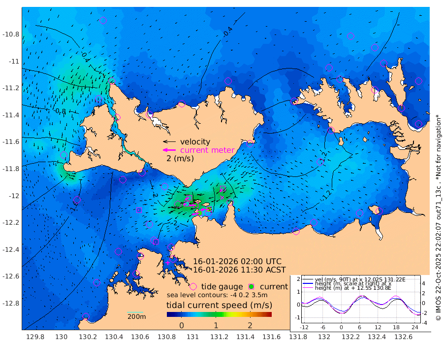 122cm/s -101T +4cm/s rms + 6cm/s 51T. Darwin_C1 52m 125cm/s -91T +4cm/s rms + 7cm/s -161T. Darwin_CW1 22m 55cm/s -105T +4cm/s rms + 8cm/s 61T. Darwin_CW2 34m 68cm/s -138T +3cm/s rms + 9cm/s 98T. Darwin_CW3 22m 103cm/s -89T +5cm/s rms + 7cm/s 88T. Darwin_C3 56m 67cm/s -115T +2cm/s rms + 9cm/s -126T. Darwin_CTbW 22m 12cm/s -116T +1cm/s rms + 1cm/s -47T. DARBGF 30m 5cm/s -123T +4cm/s rms + 3cm/s 80T. NRSDAR 19m -22cm Goodrich Bank -142cm Point Jenny -140cm Native Point -158cm Fish Reef -162cm Tapa Bay -90cm Point Fawcett (Offshore) -173cm Burge Point -136cm Munkunuwa -129cm Beagle A -160cm Parsons Bank -167cm Fenton Patches -165cm Hancox Shoal Area -178cm Nightcliff -193cm Darwin -179cm Charles Point Patches -160cm Glyde Point -144cm Chambers Bay -148cm Point Stuart -147cm Cape Hotham -127cm Christine Reef -158cm West Alligator Head -159cm East Field Island -130cm Two Hills Bay -132cm Camp Point -160cm Medina Inlet South -67cm South Barlow Point -51cm St. Asaph Bay -24cm Cape Van Dieman -33cm Snake Bay -32cm Cache Point -43cm Point Jahleel (Off) -80cm Cape Don -47cm Port Essington -42cm Smith Point - West -41cm NW Peacock Island -38cm North Of Jones Shoal -14cm Peacock Island -59cm Point David -44cm D'urville Point -59cm Copeland Island -61cm One Tree Point